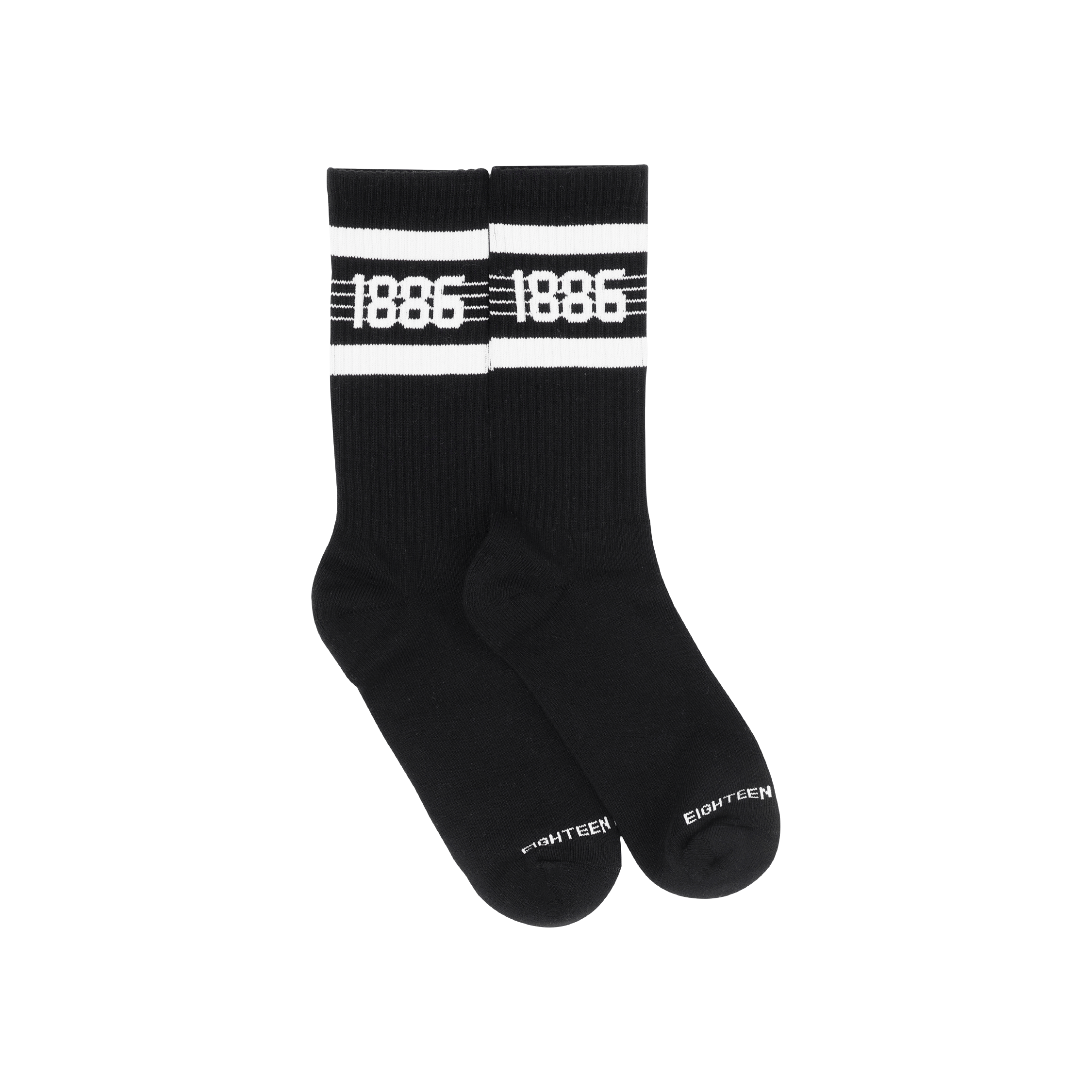 جوارب "1886 السوداء بشعار أبيض" مجموعة من 2 قطعة مصنوعة من مزيج عالي الجودة من القطن والبوليستر والإيلاستين مما يعني أنها يمكن أن تقاوم الاستخدام اليومي بينما تبقى مريحة وملتصقة بشكل جيد.