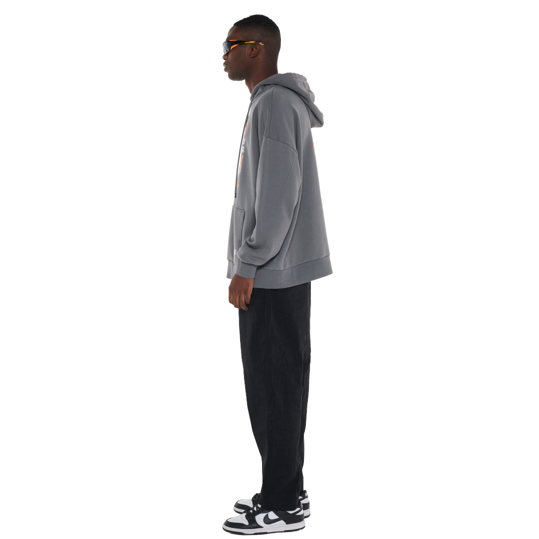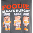 هودي بحجم كبير مع طباعة "Foodie; always hungry" على الجزء الأمامي وجرافيك "Team D" مطبوع على الجزء الأمامي. اللون: رمادي. القماش: قطن 100٪