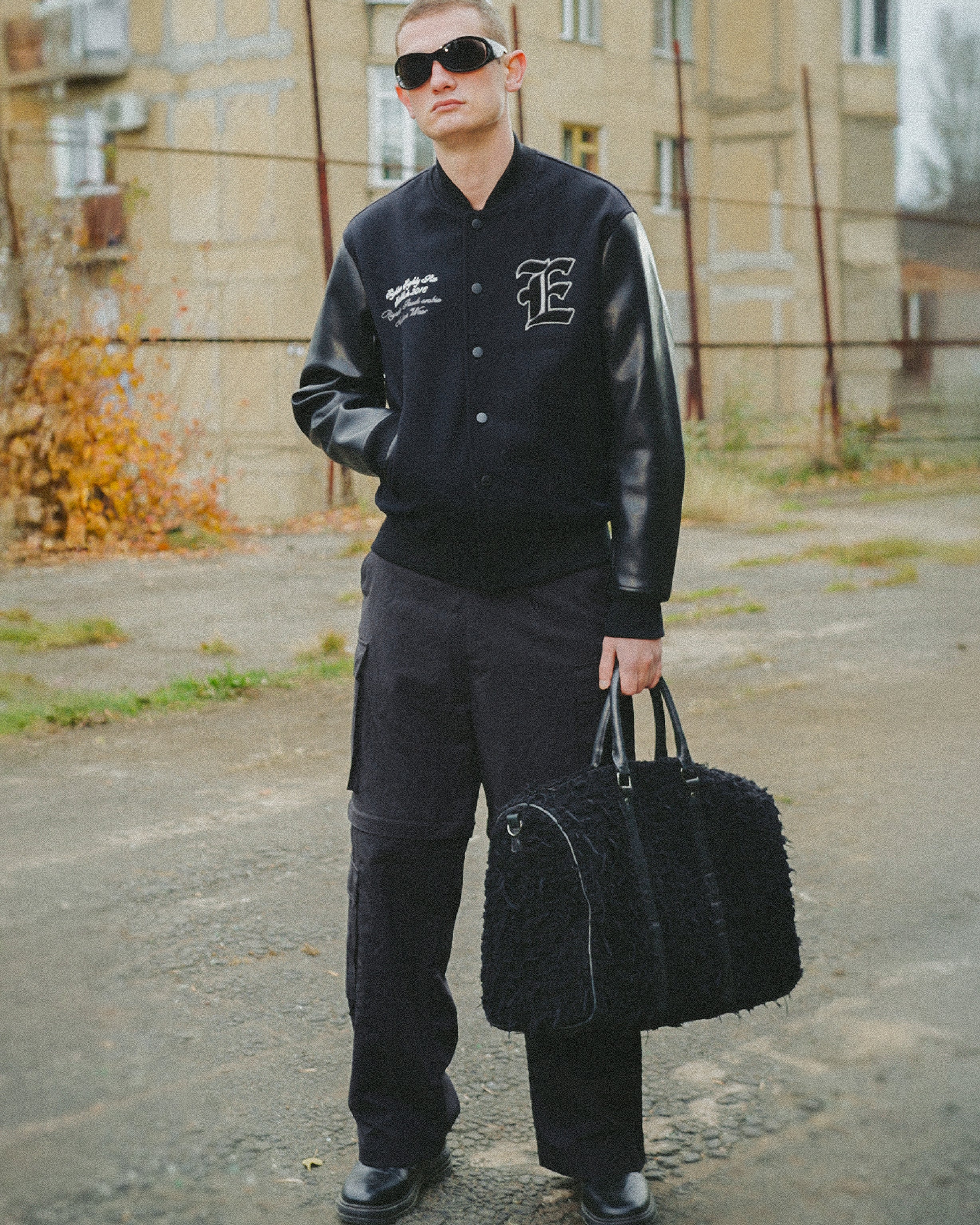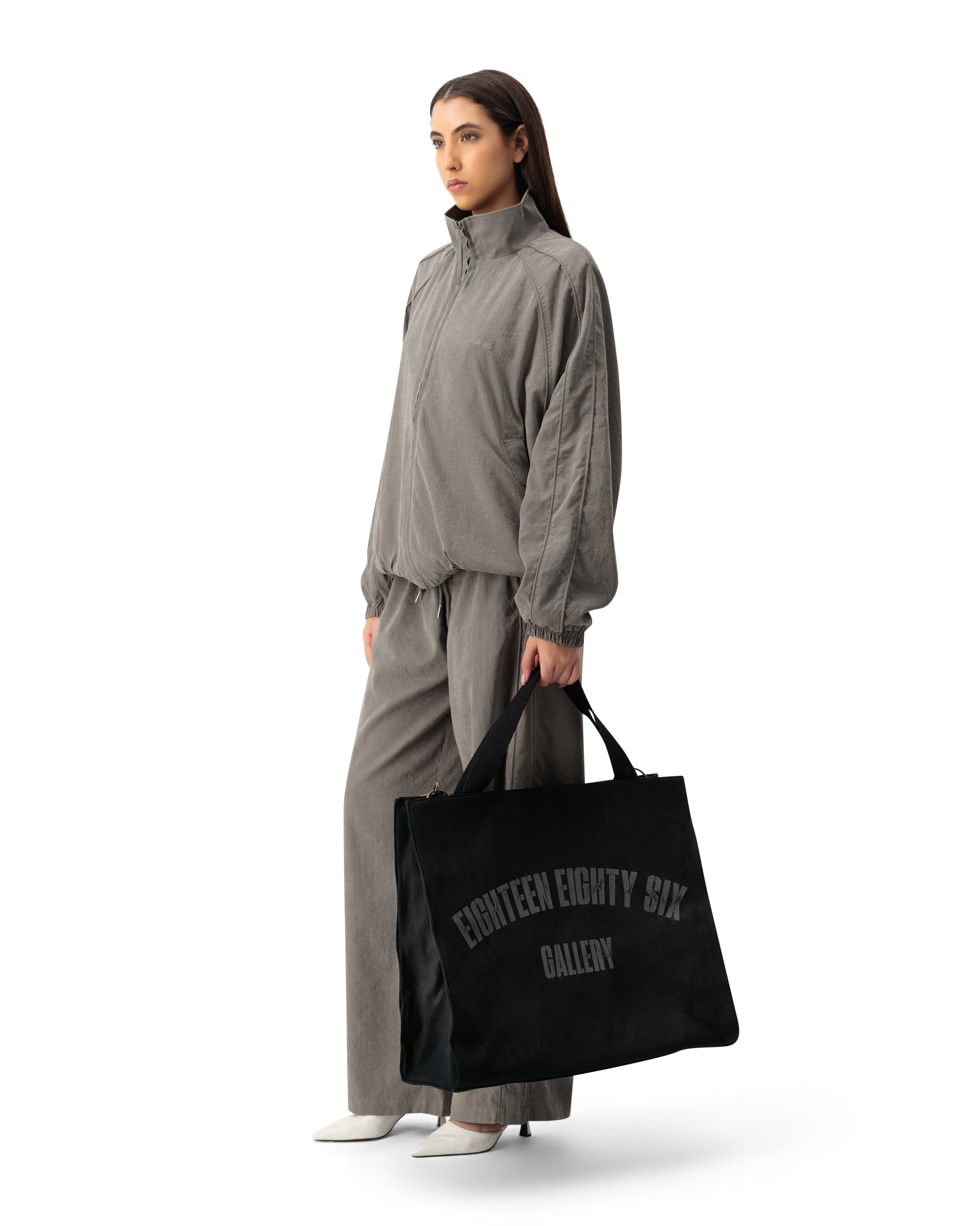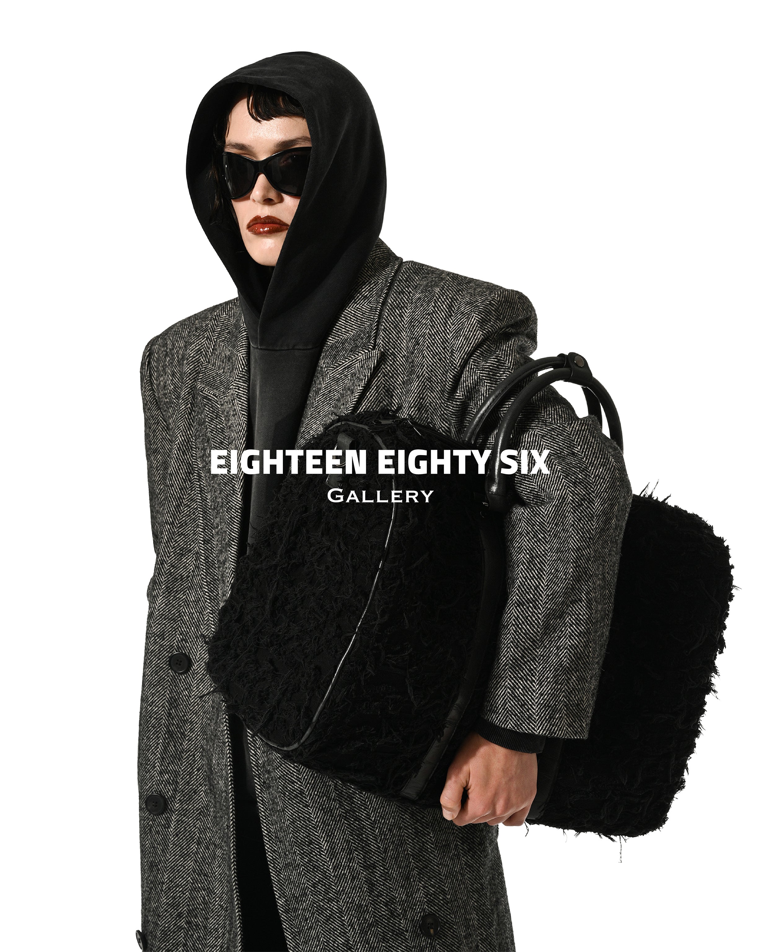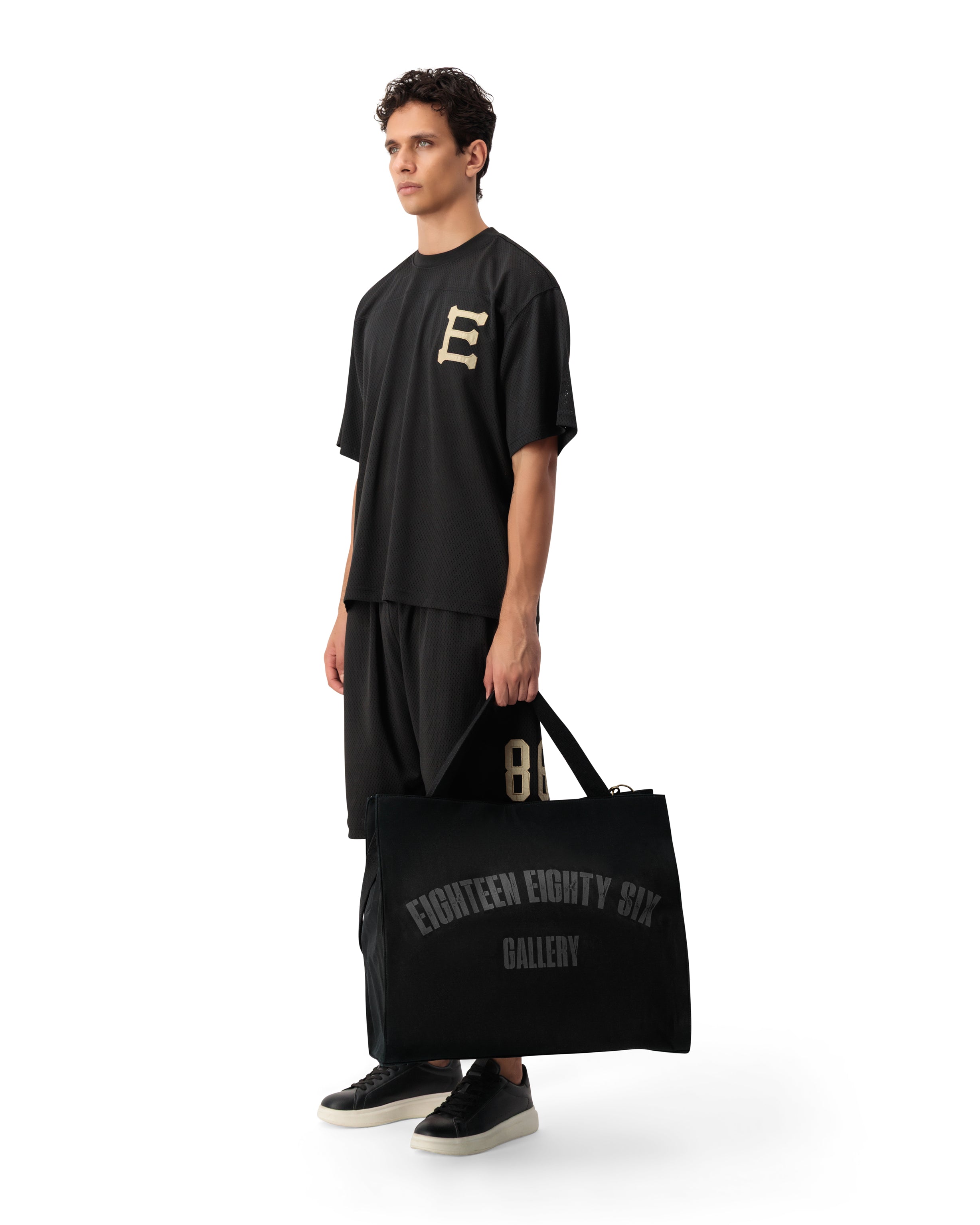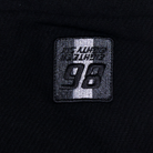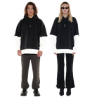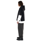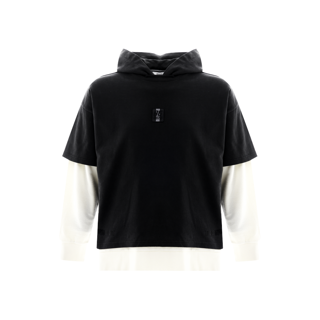 هودي مزدوج الحجم طويل الأكمام مع شعار "86" المطرز على الجهة الأمامية. اللون: أسود مغسول بأكمام بيضاء. النسيج: قطن 100٪