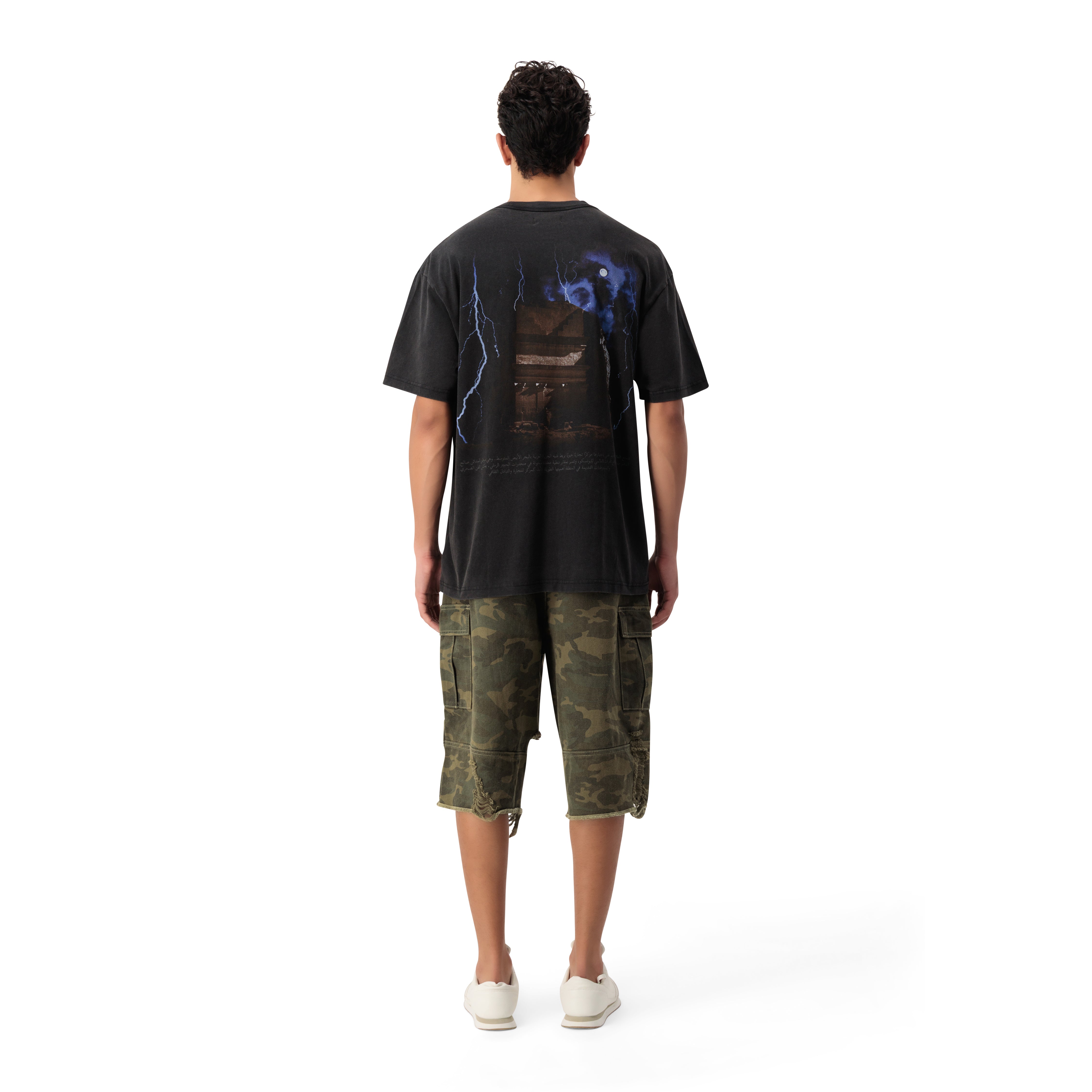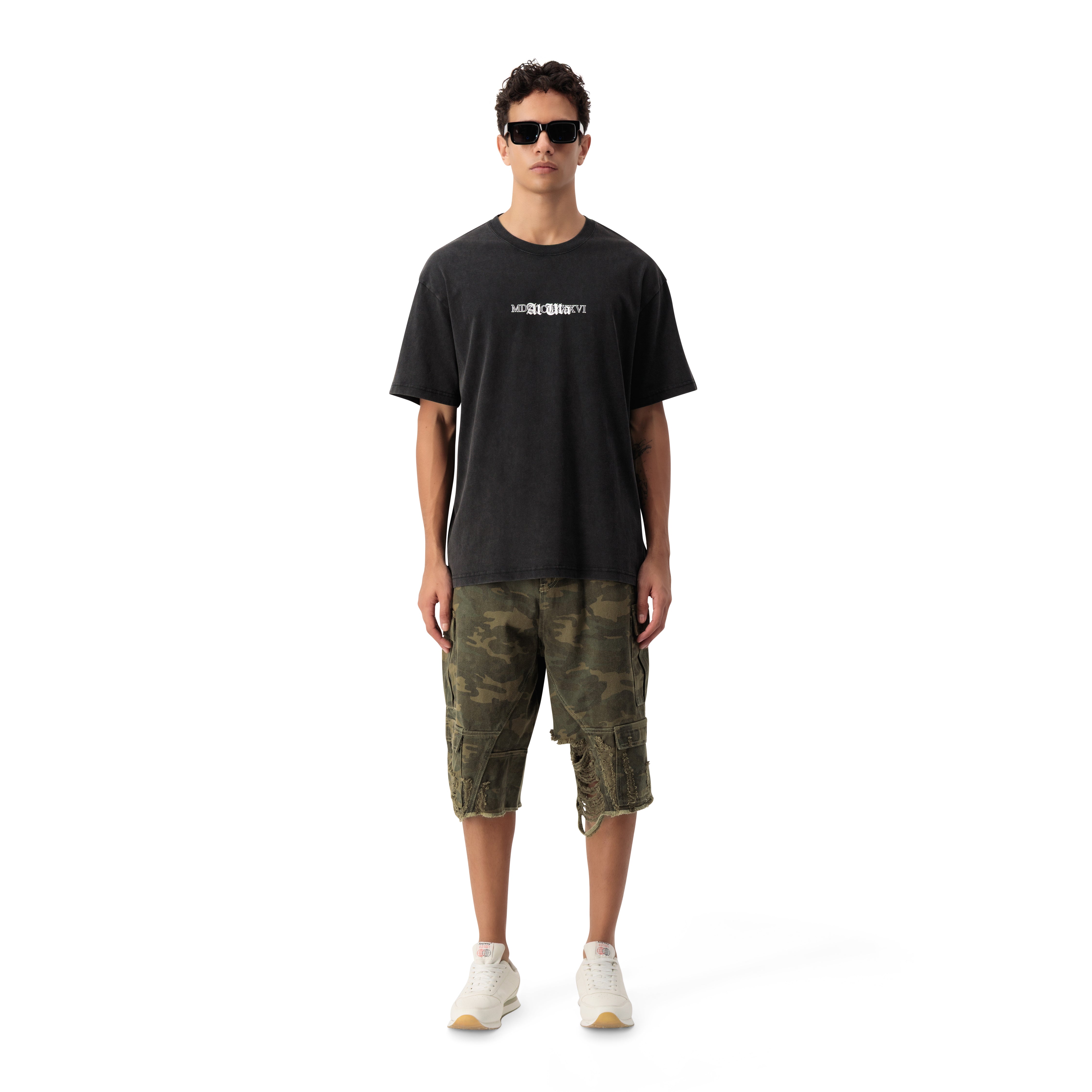 DISTRESSED CAMO SHORTS