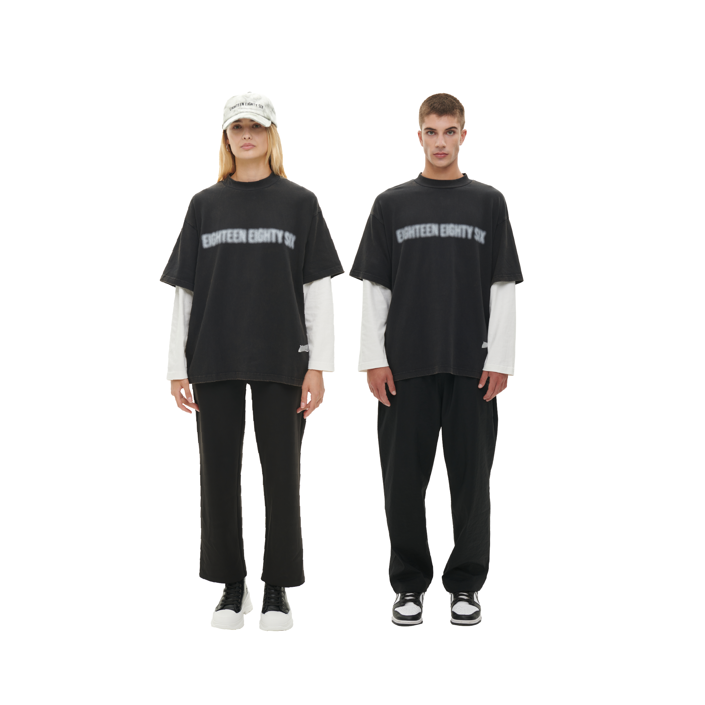 - تيشيرت كبير الحجم طويل الأكمام مع طباعة شعار "1886" على الجزء الأمامي. ياقة عنق طاقم. علامة مطاطية في الخلف.