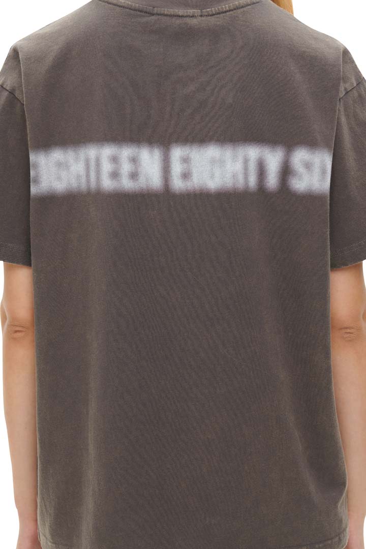 - تيشيرت ذو أكمام قصيرة وفضفاض مع طباعة ''EIGHTEEN EIGHTY SIX''. ياقة مستديرة.