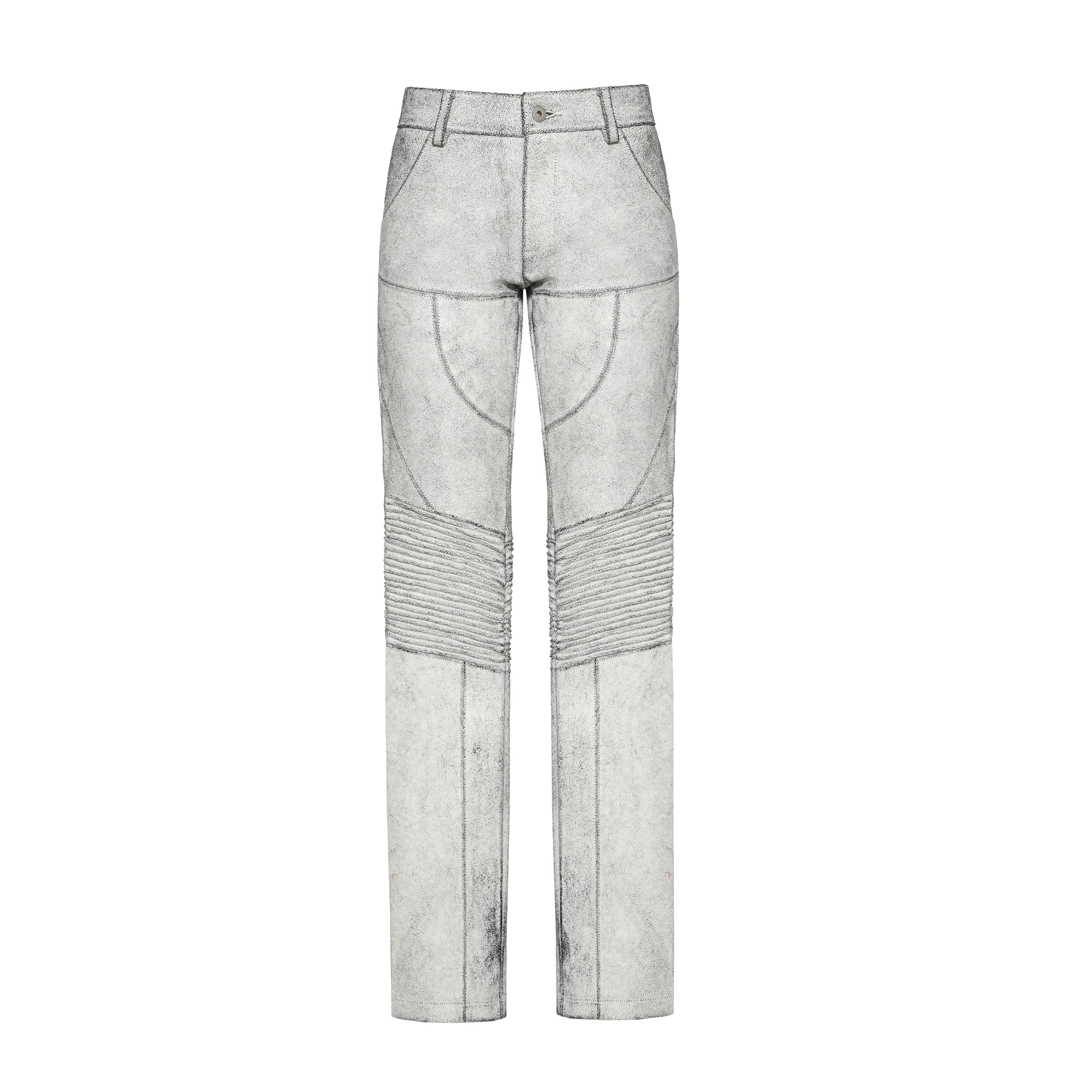بنطال راكبي الدراجات النارية من الجلد المتشقق - رمادي