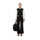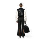 A nod to the retro clubbing trends of the mid-90s, these black pants put a bold twist on a classic womenswear silhouette. Featuring exposed silver metal zippers running down the back of each leg from pocket to hemline, they add an edgy, party-ready vibe. Cut for a straight-line relaxed fit, these versatile pants pair effortlessly with any footwear and are also available in white for a sleek alternative.