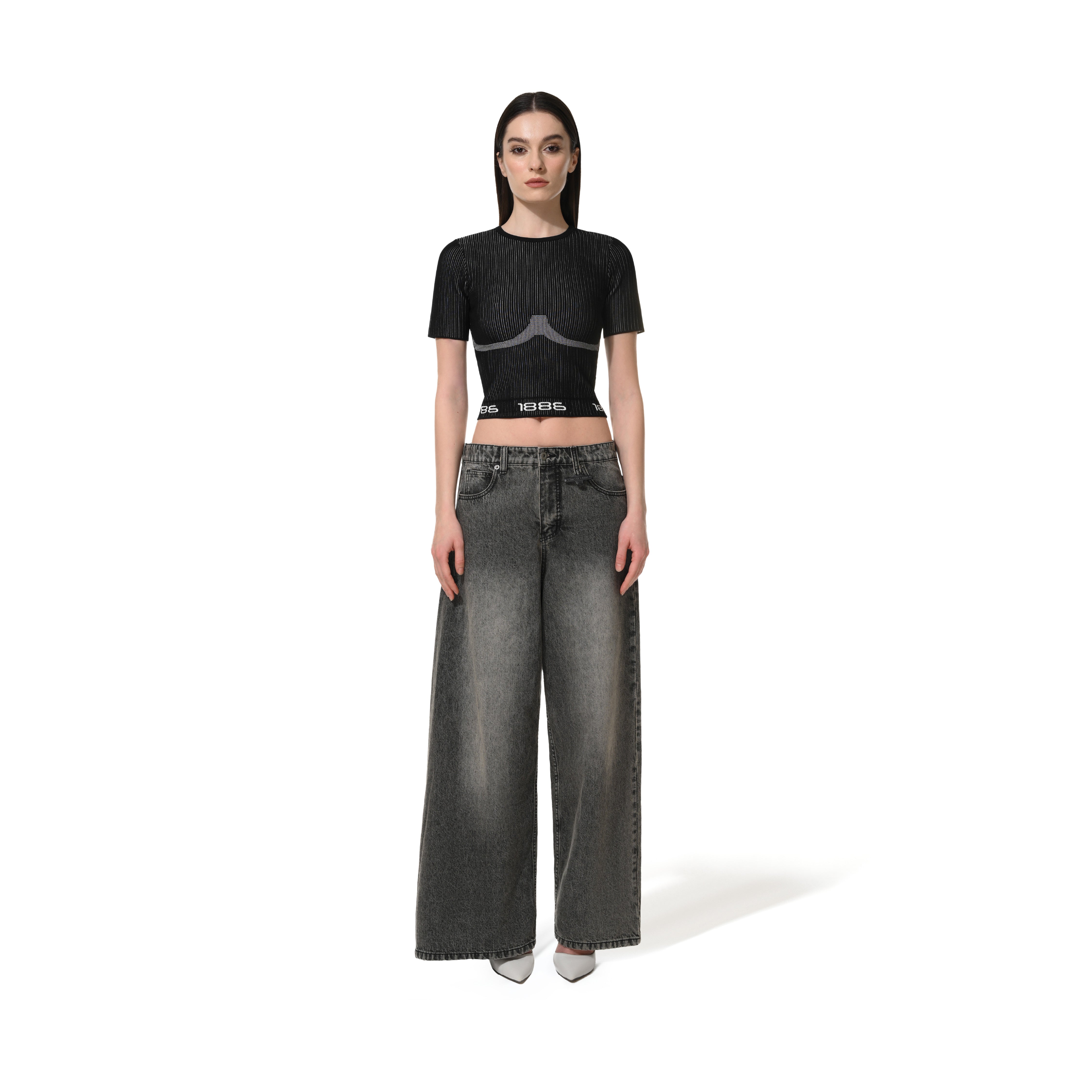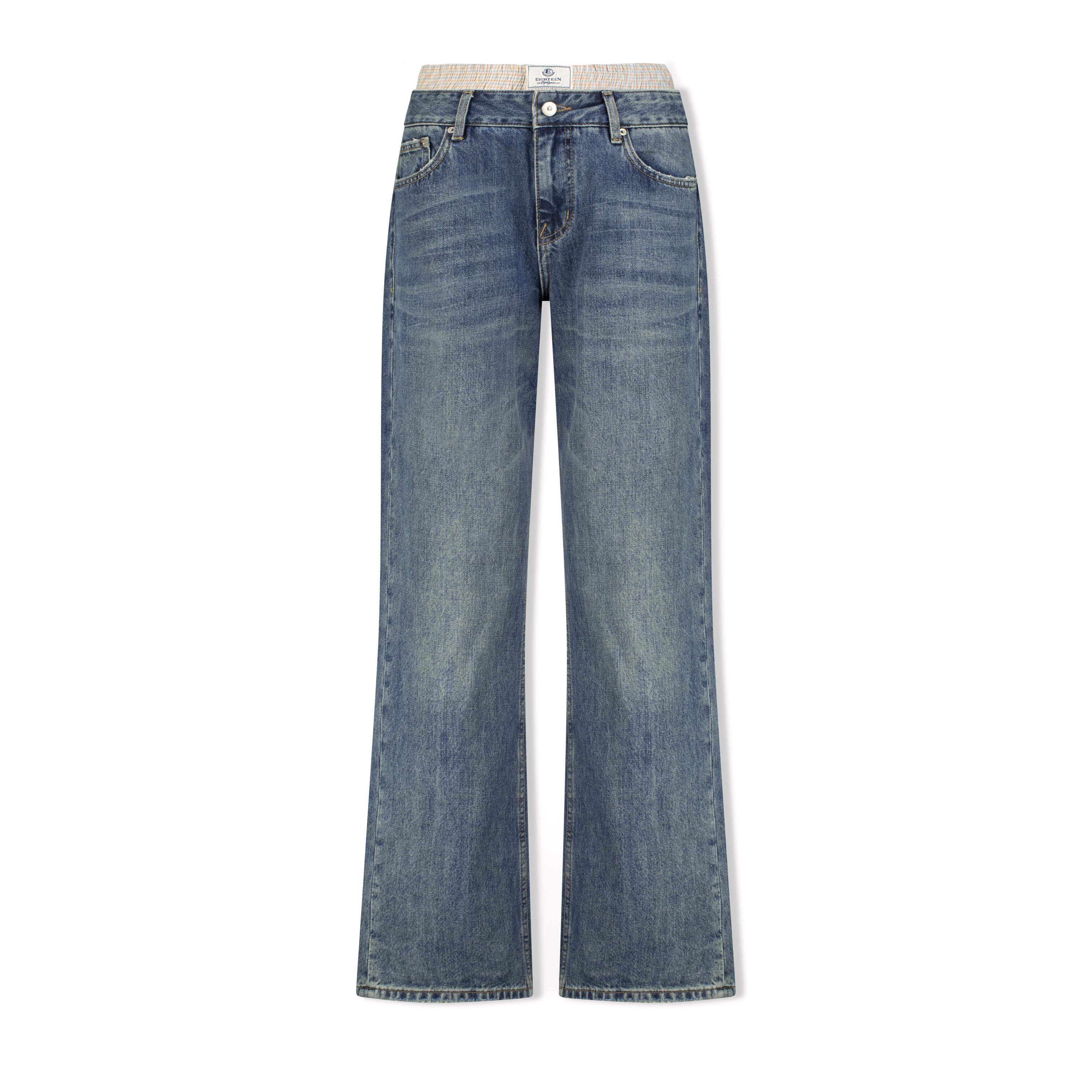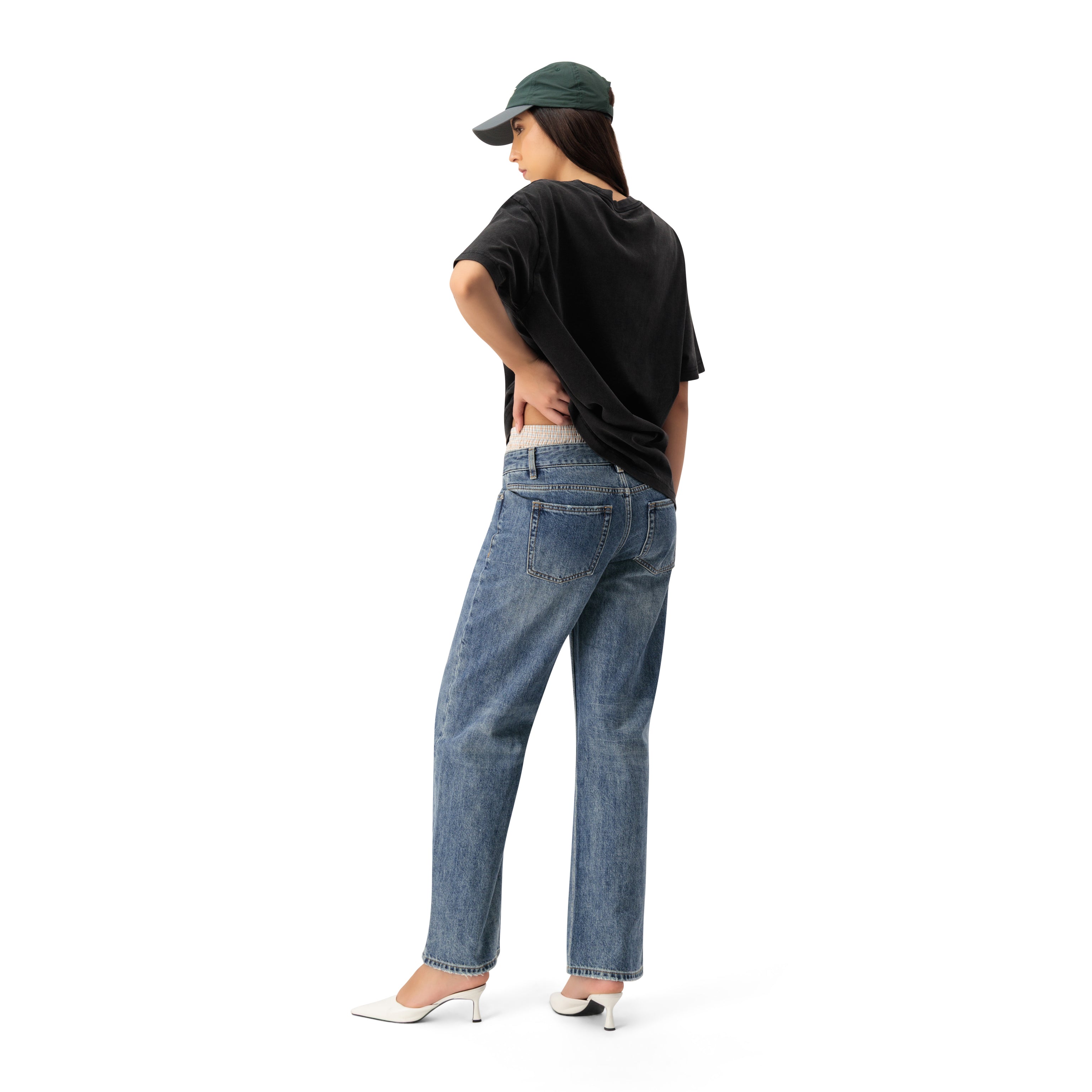 بنطلون ضيق بحزام خصر يحمل شعار 1886