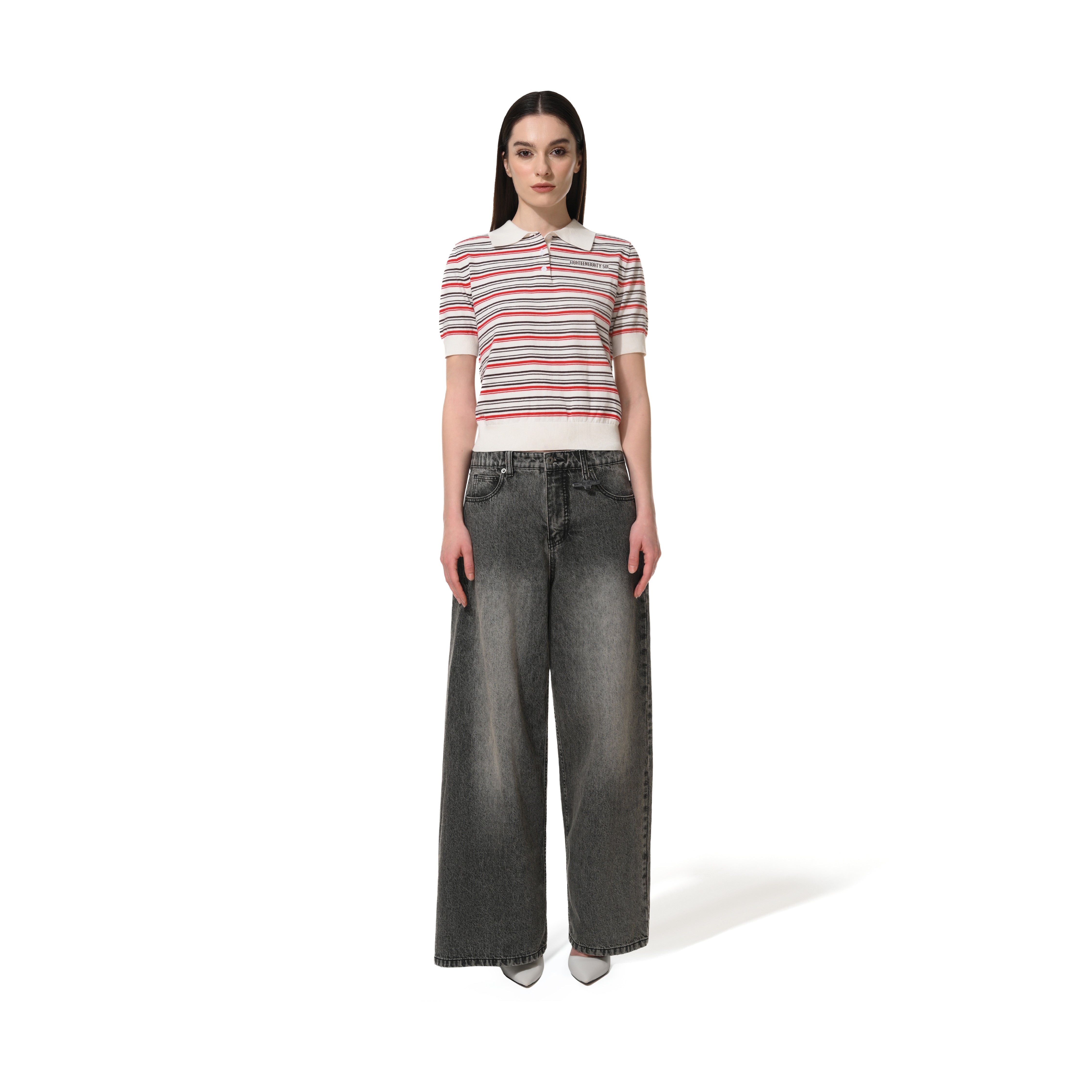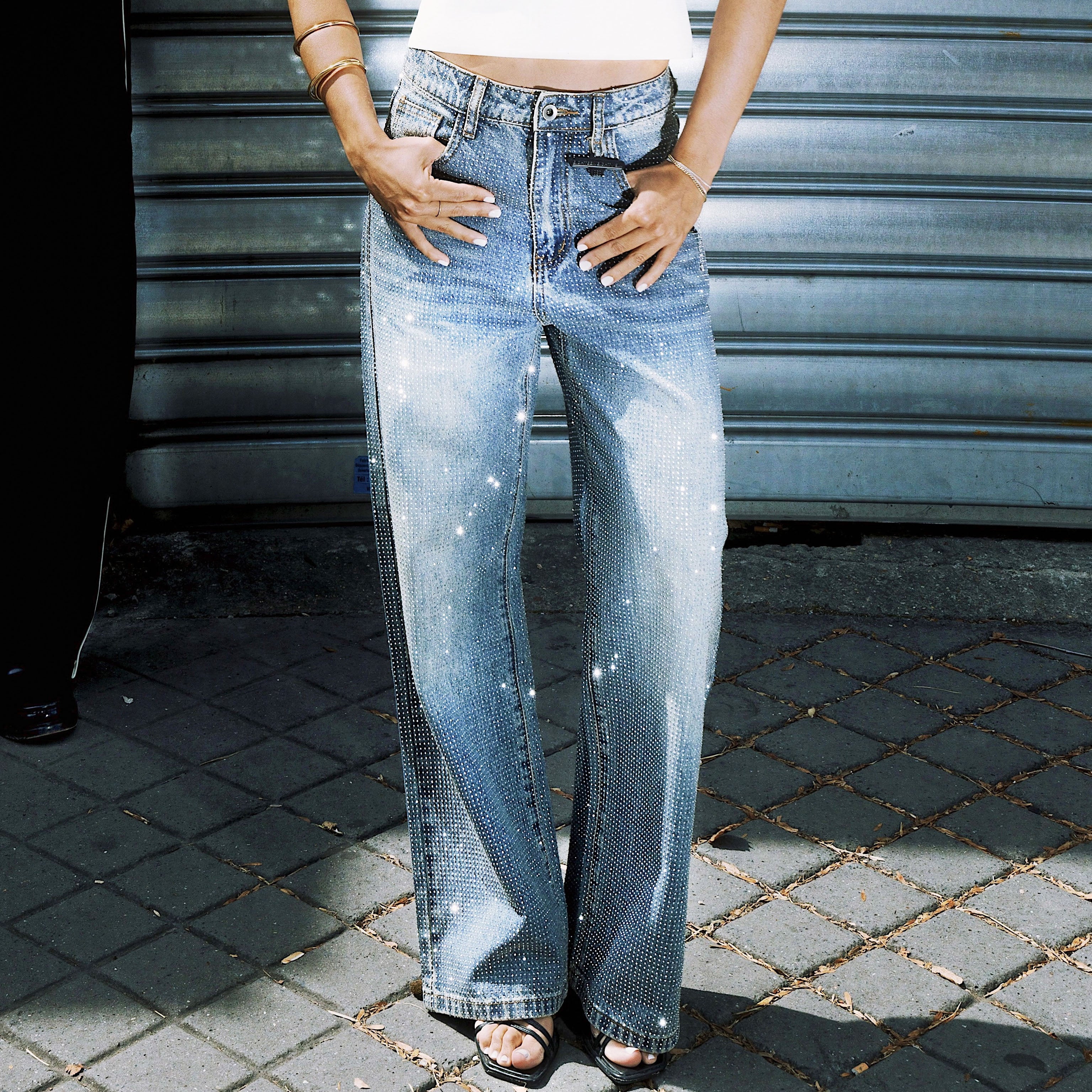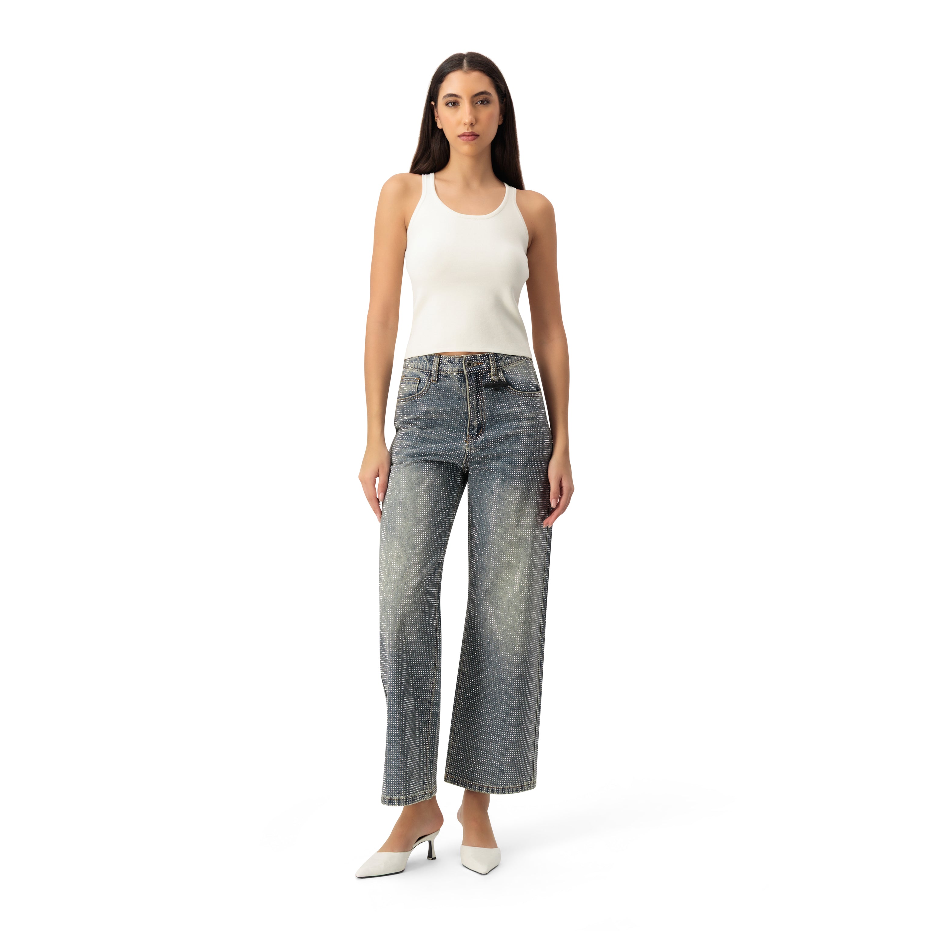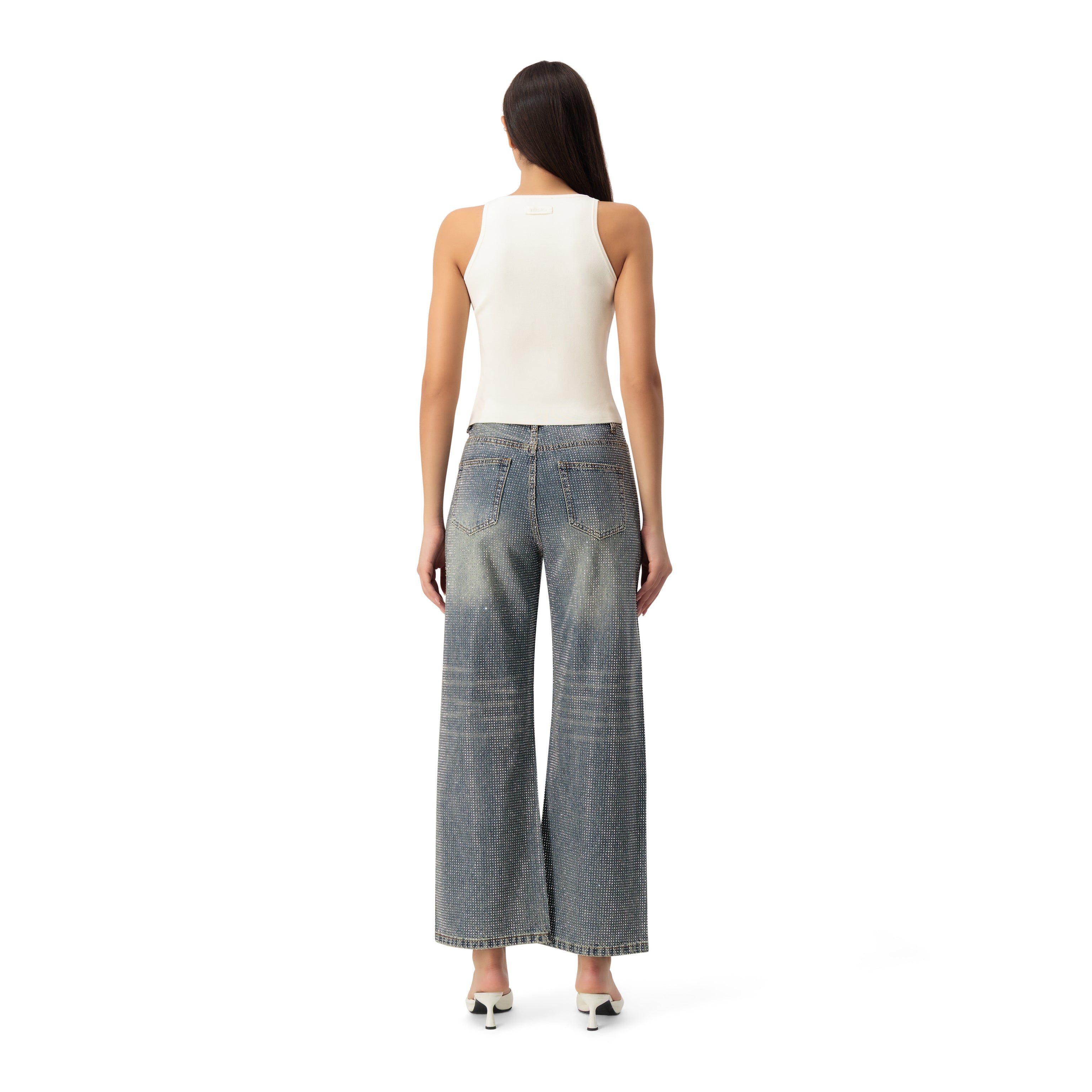 بنطلون ضيق بحزام خصر يحمل شعار 1886