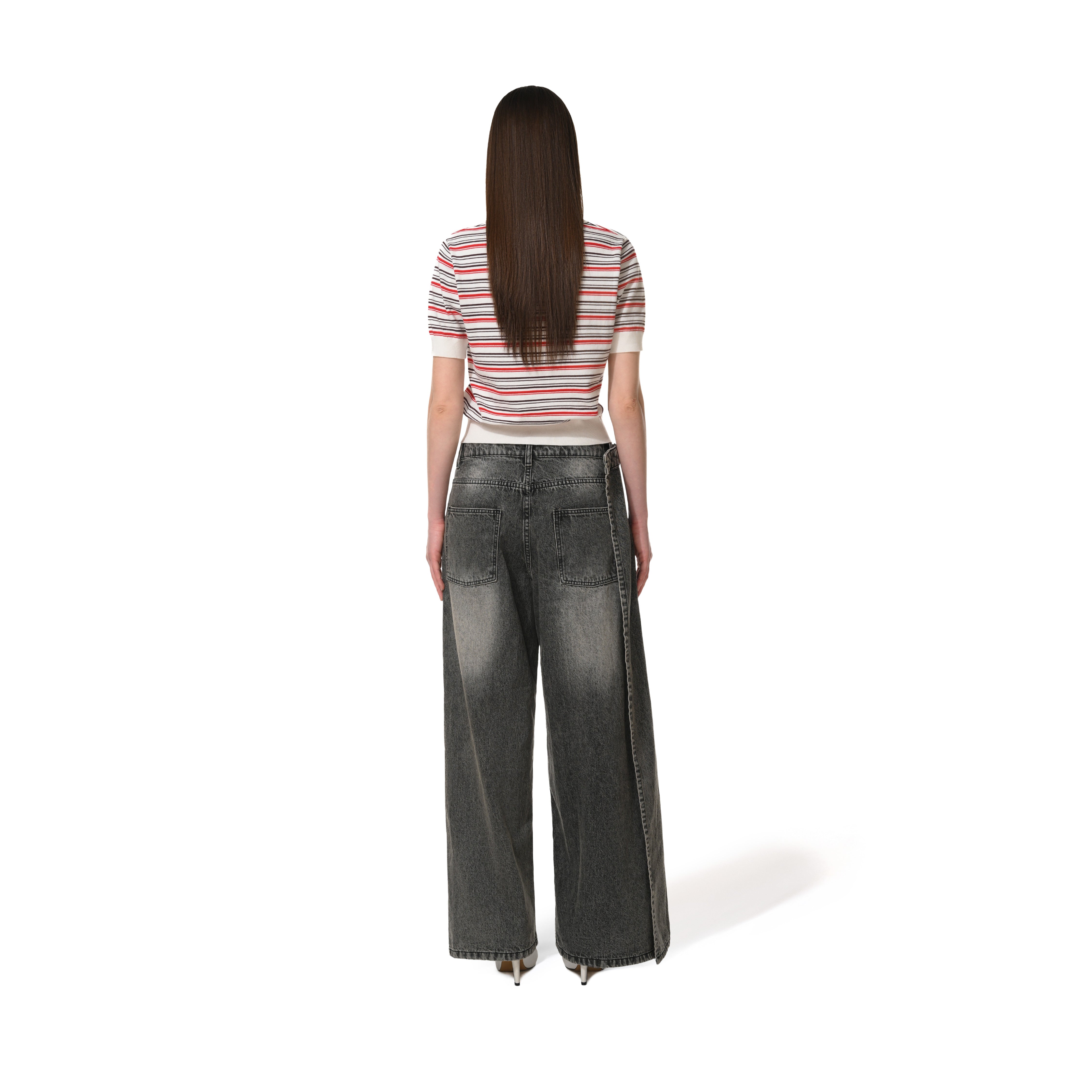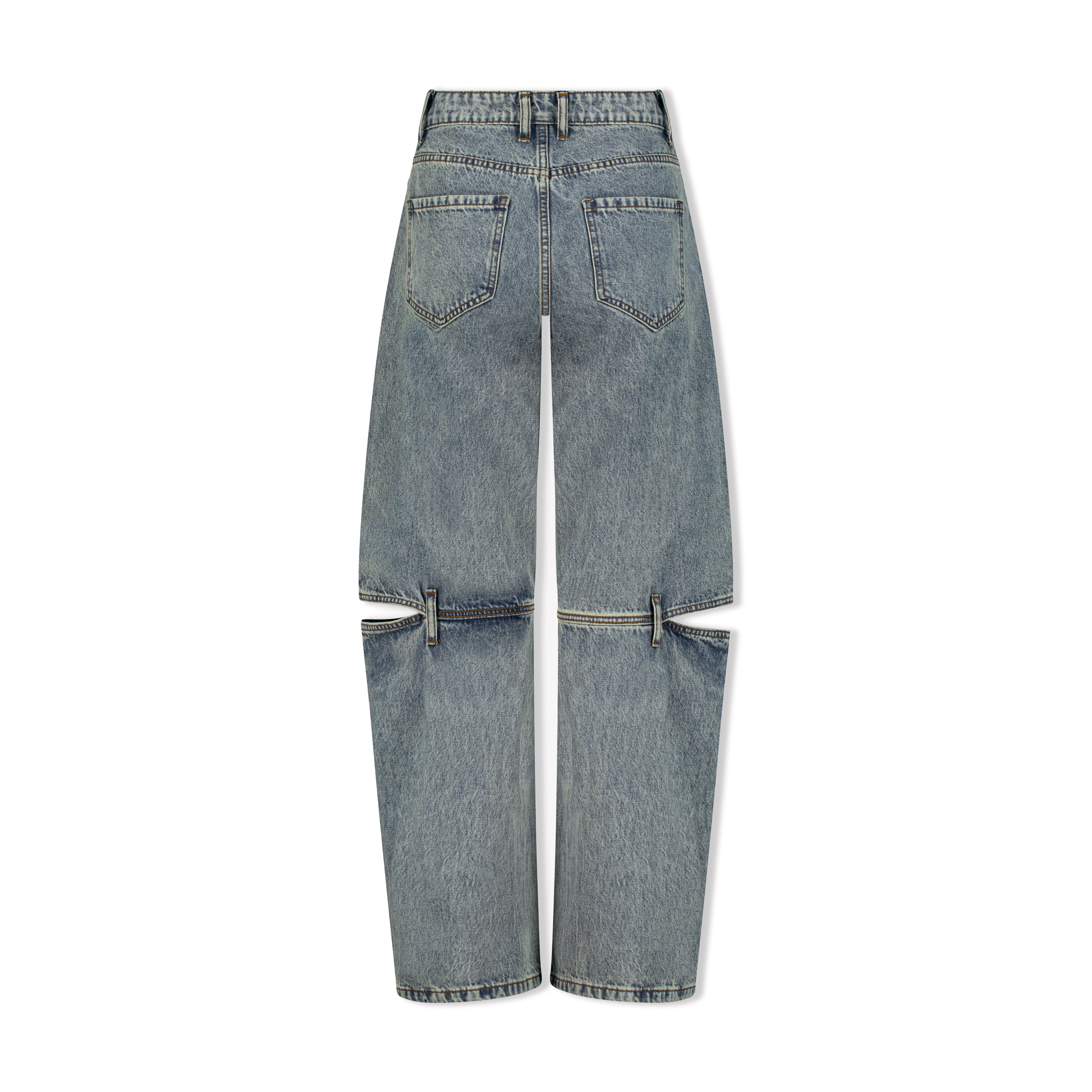 بنطال راكبي الدراجات النارية من الجلد المتشقق - رمادي