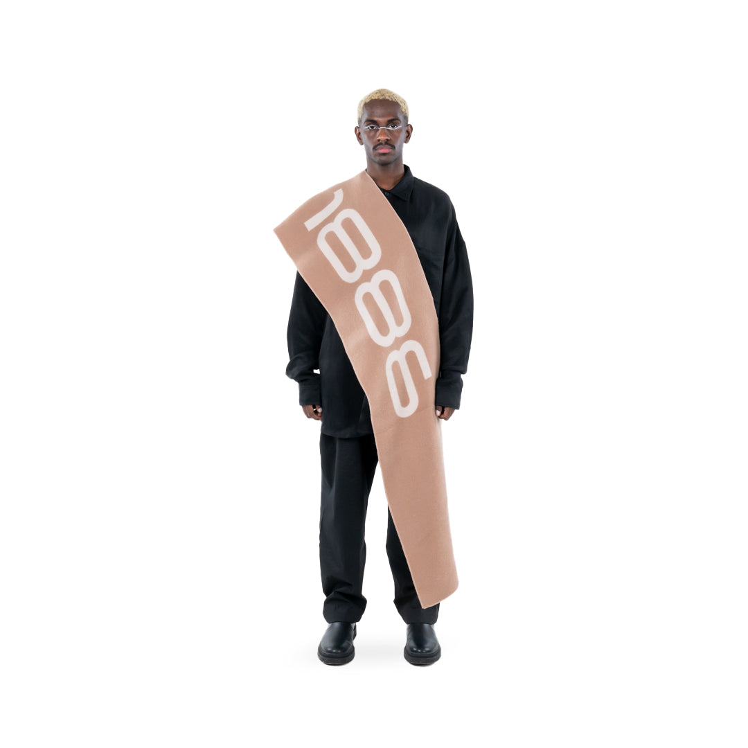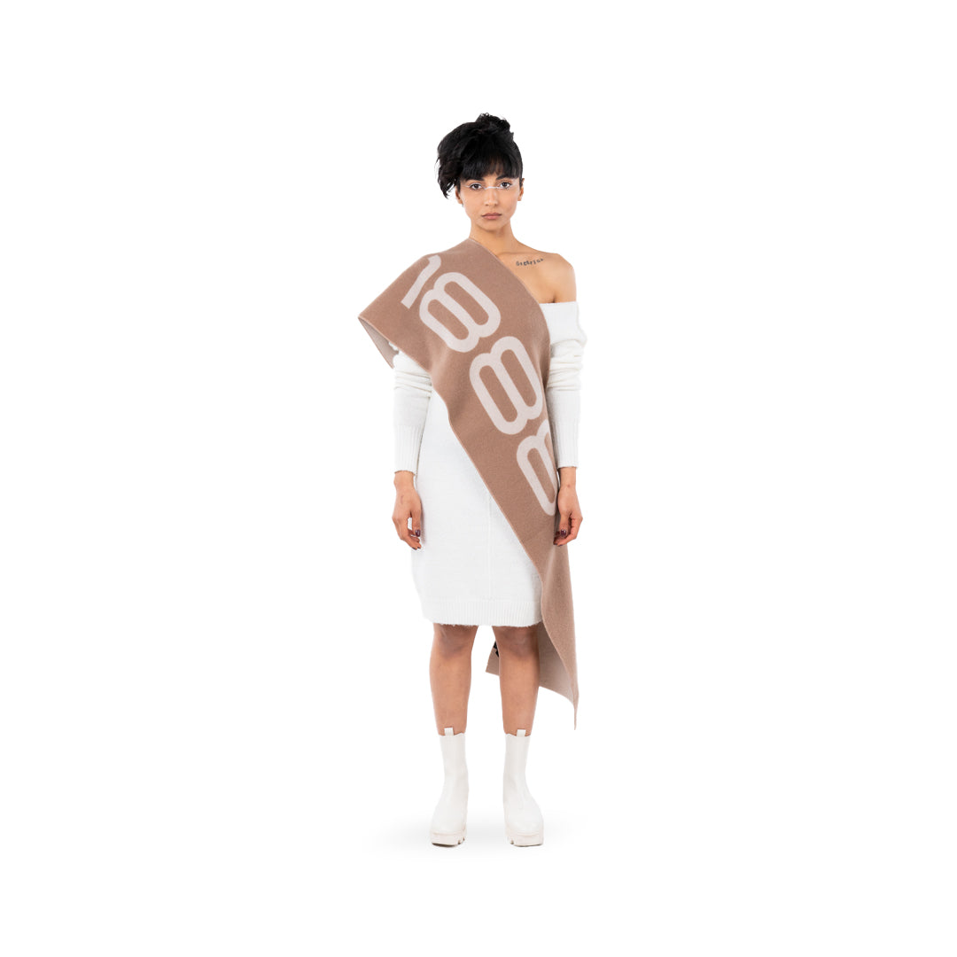 وشاح وجه مزدوج من الصوف باللون البني والبيج. بشعار1886مطرز من الجانبين.