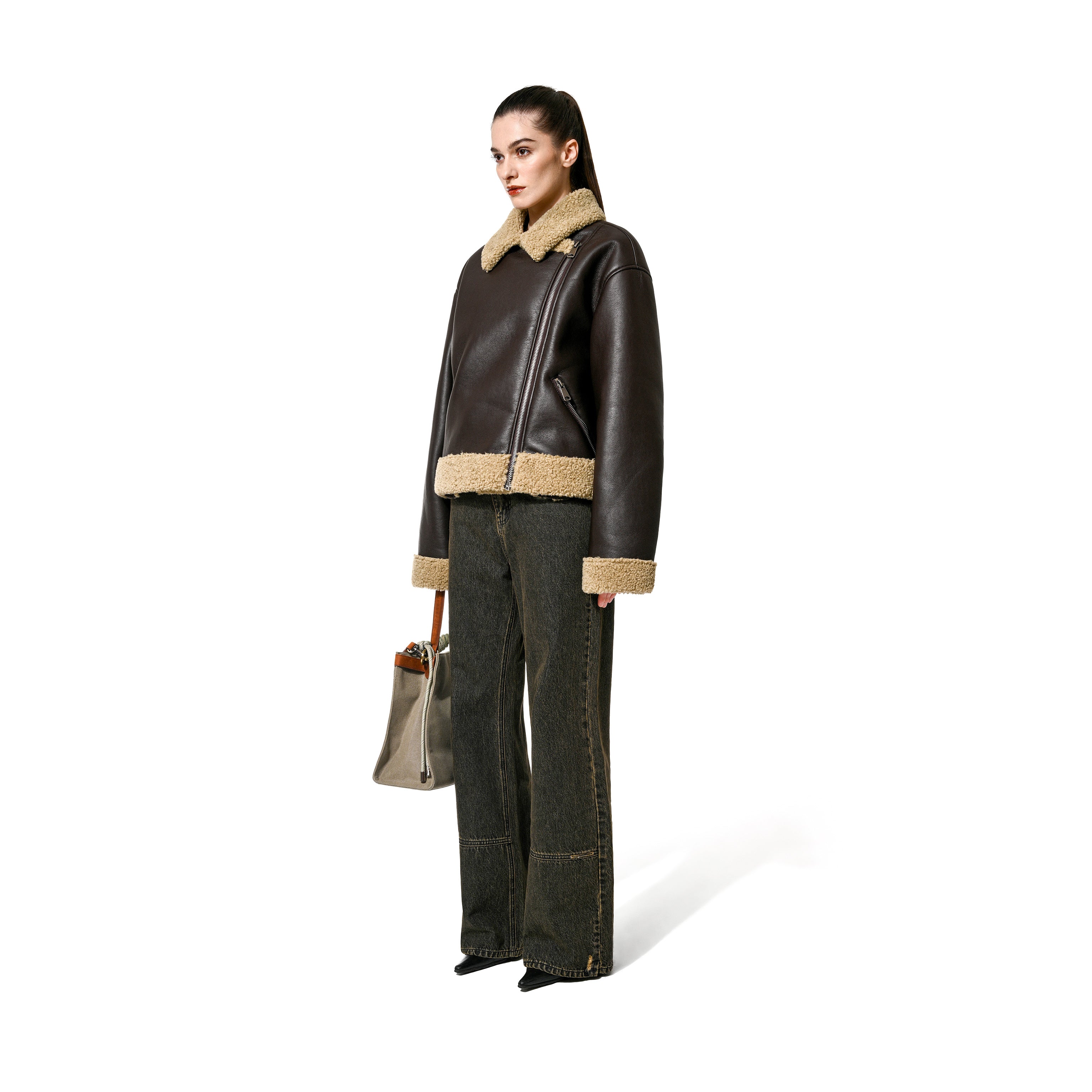 FAUX SHEARLING JKT - BROWN