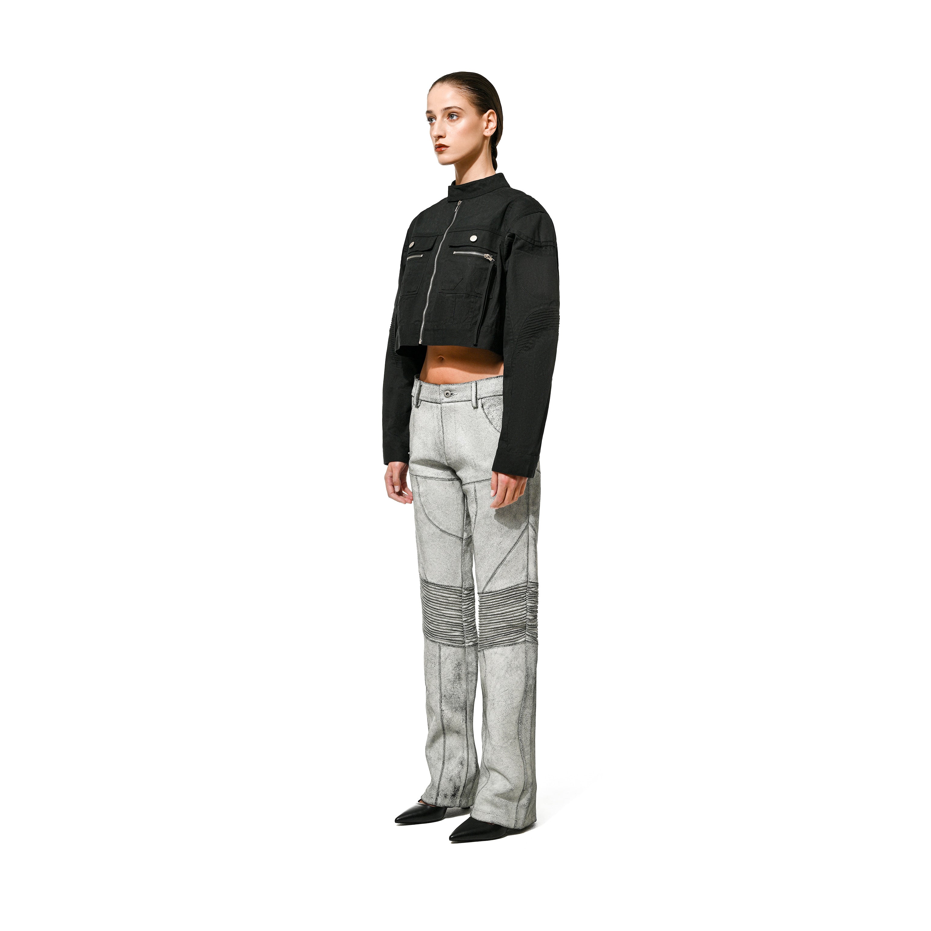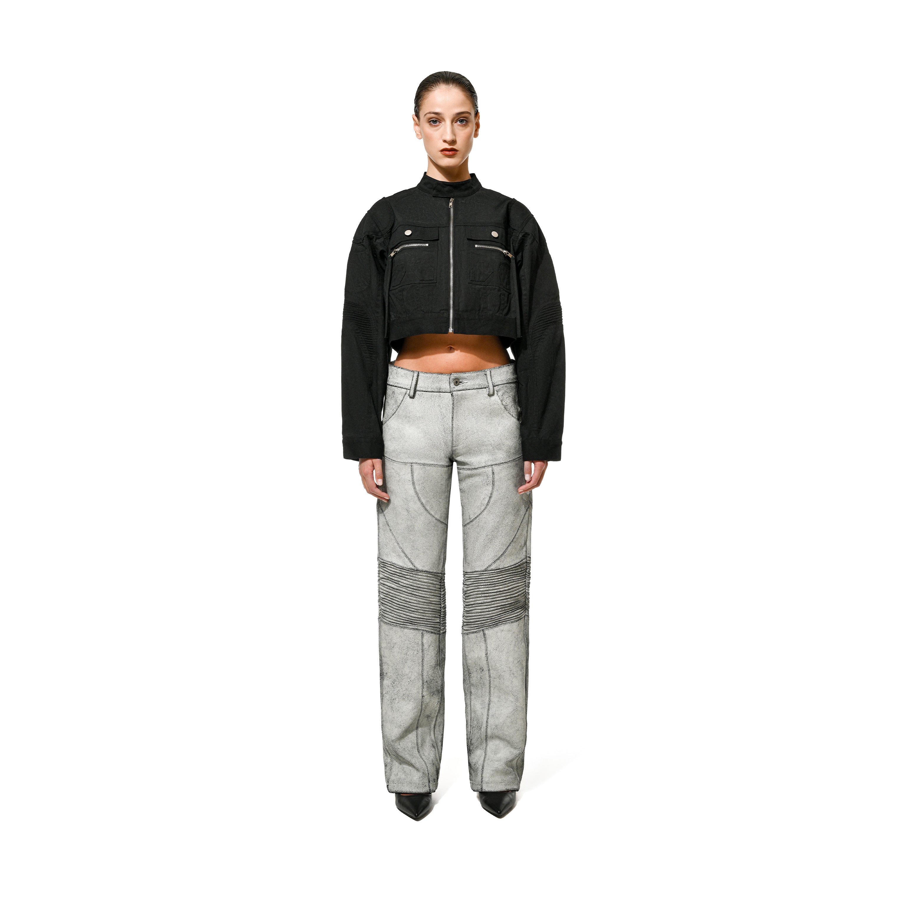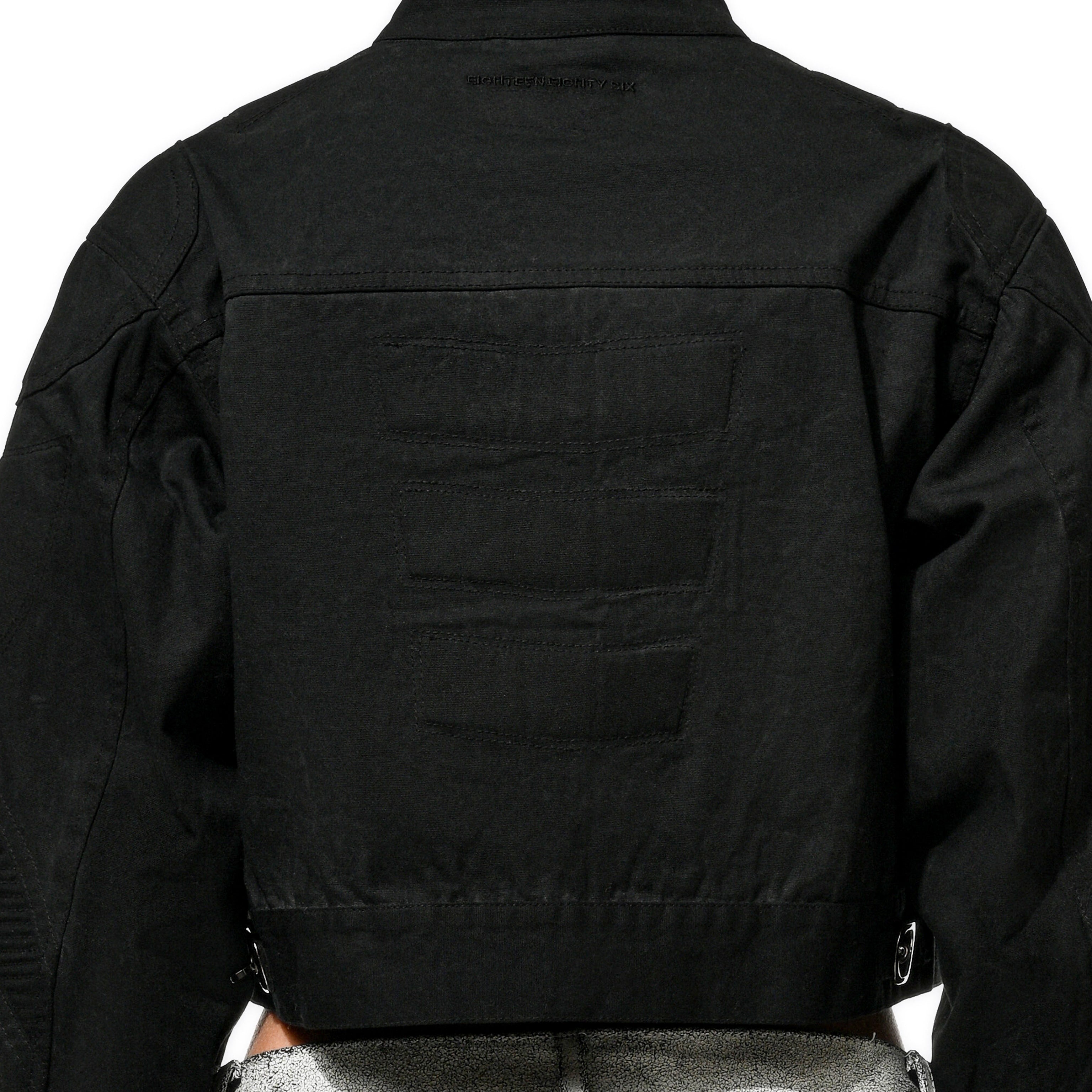 CROPPED WAXED BIKER JKT - Black