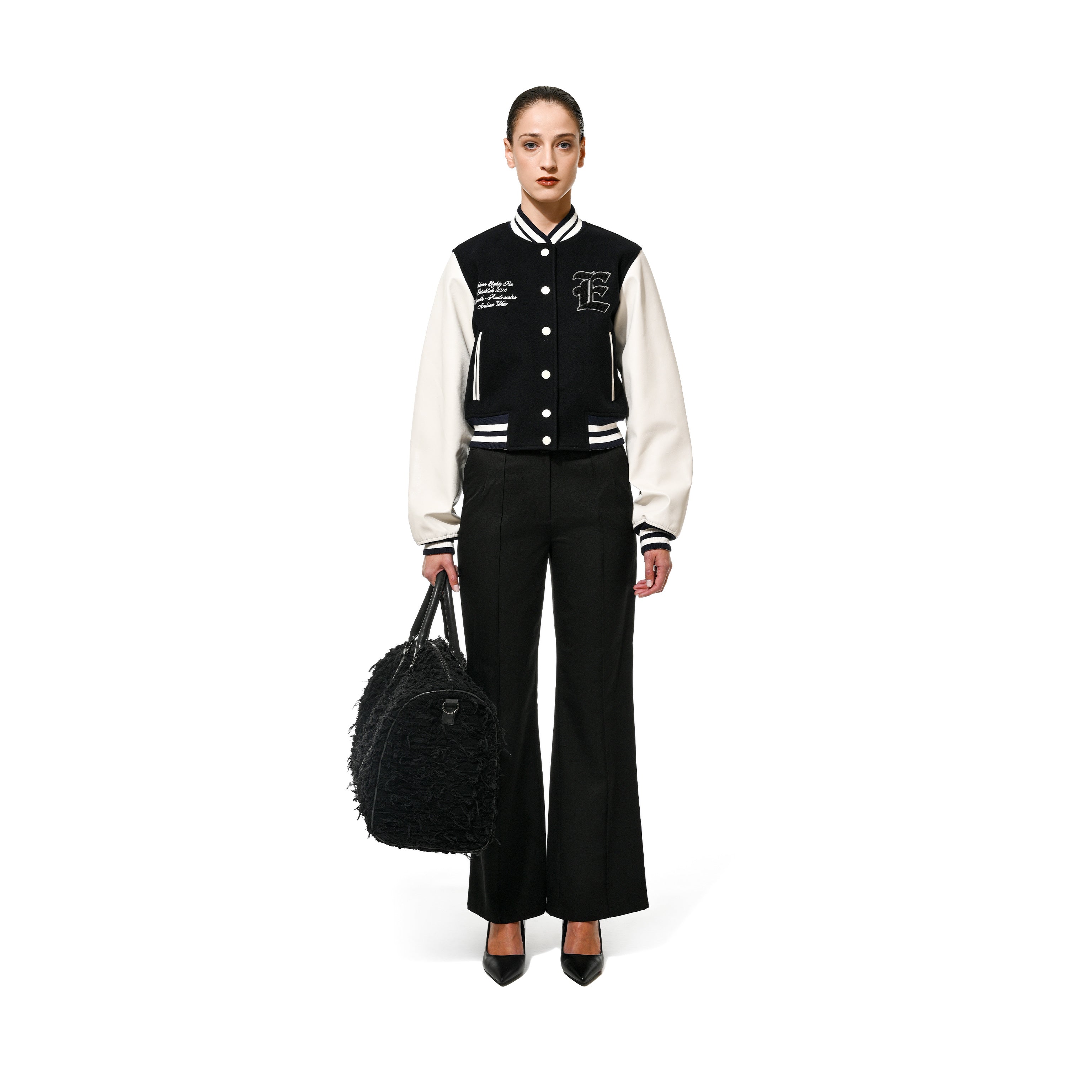 SHORT VARSITY JACKET - BLACK