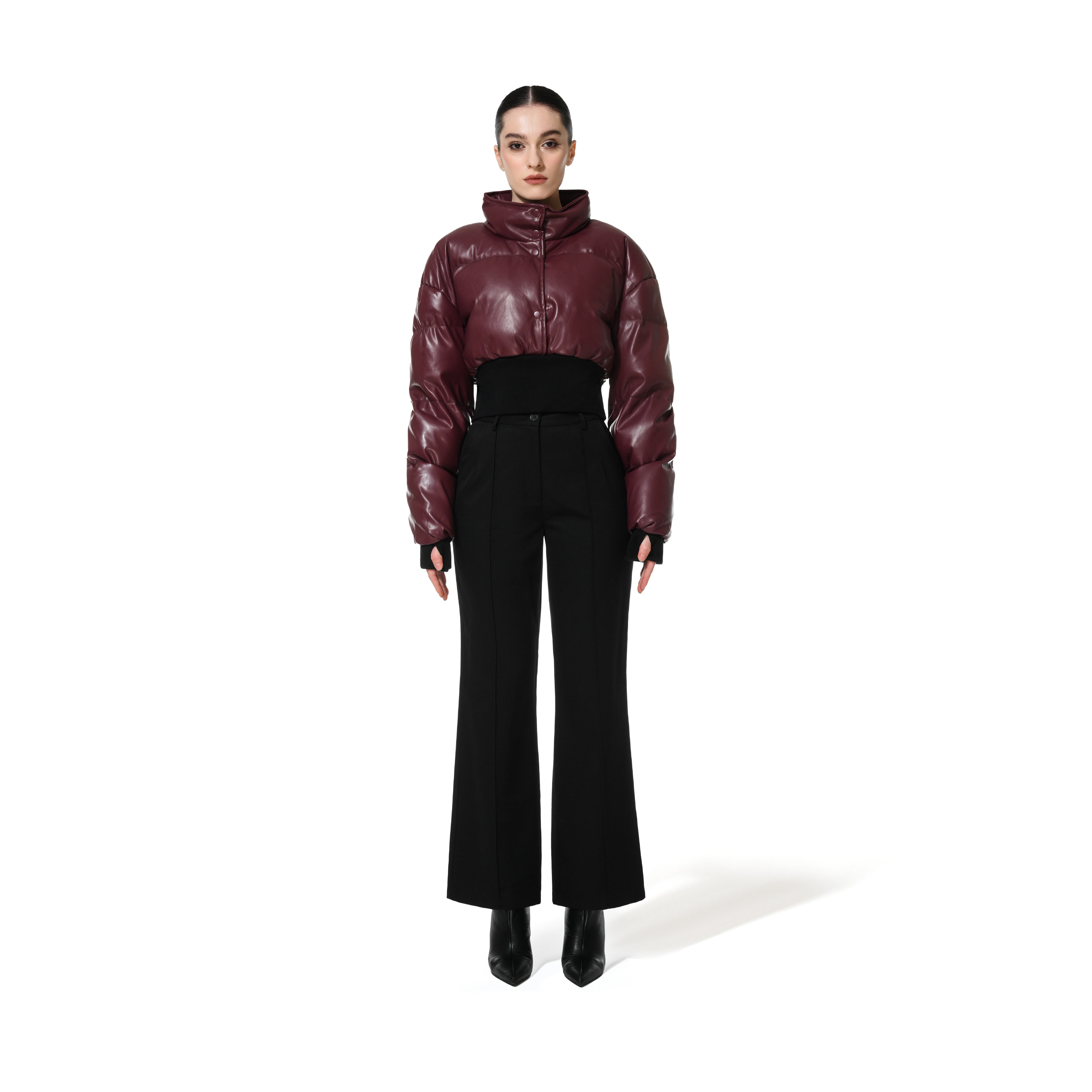 CROPPED LEATHER PUFFER JACKET