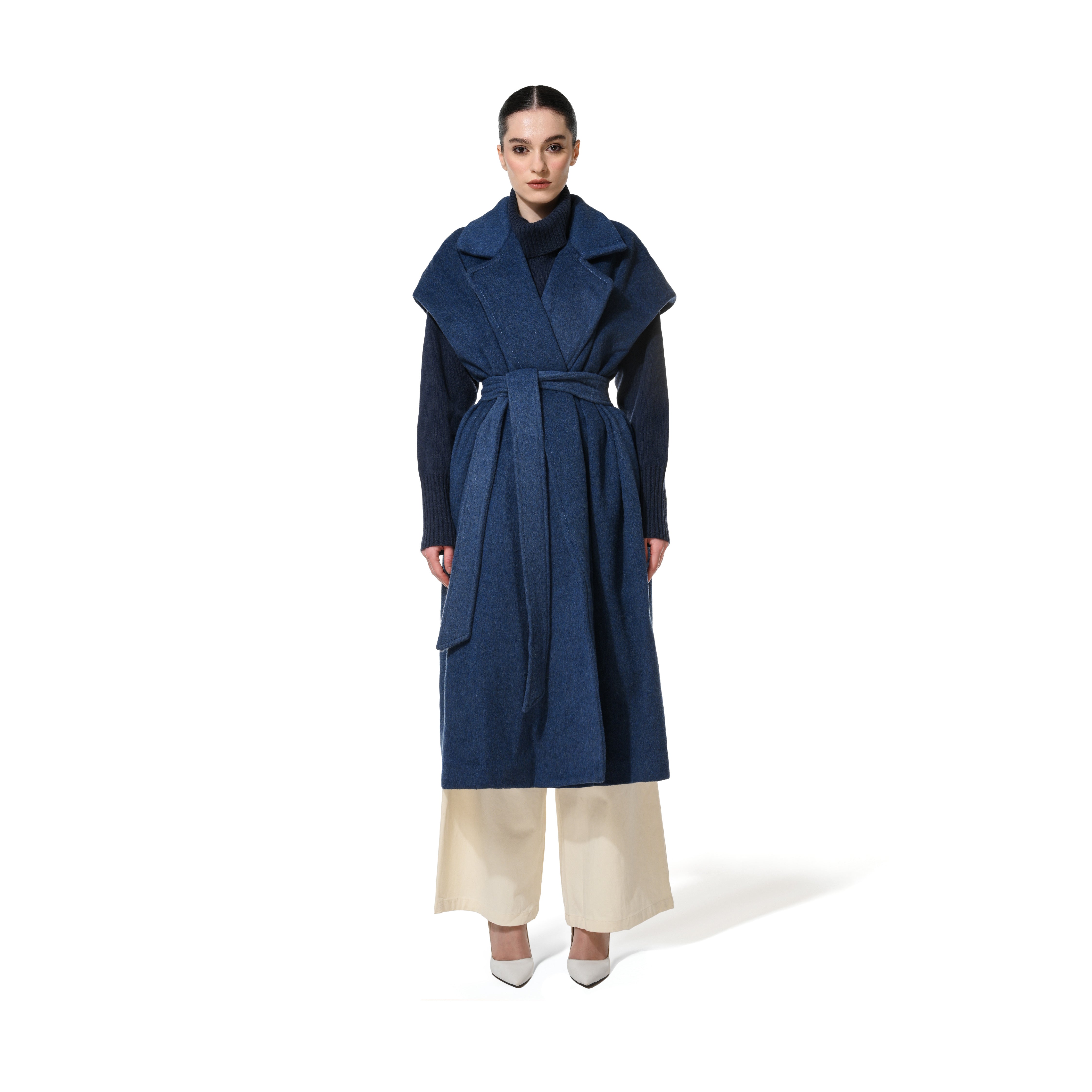 SLEEVE LESS COAT BLUE