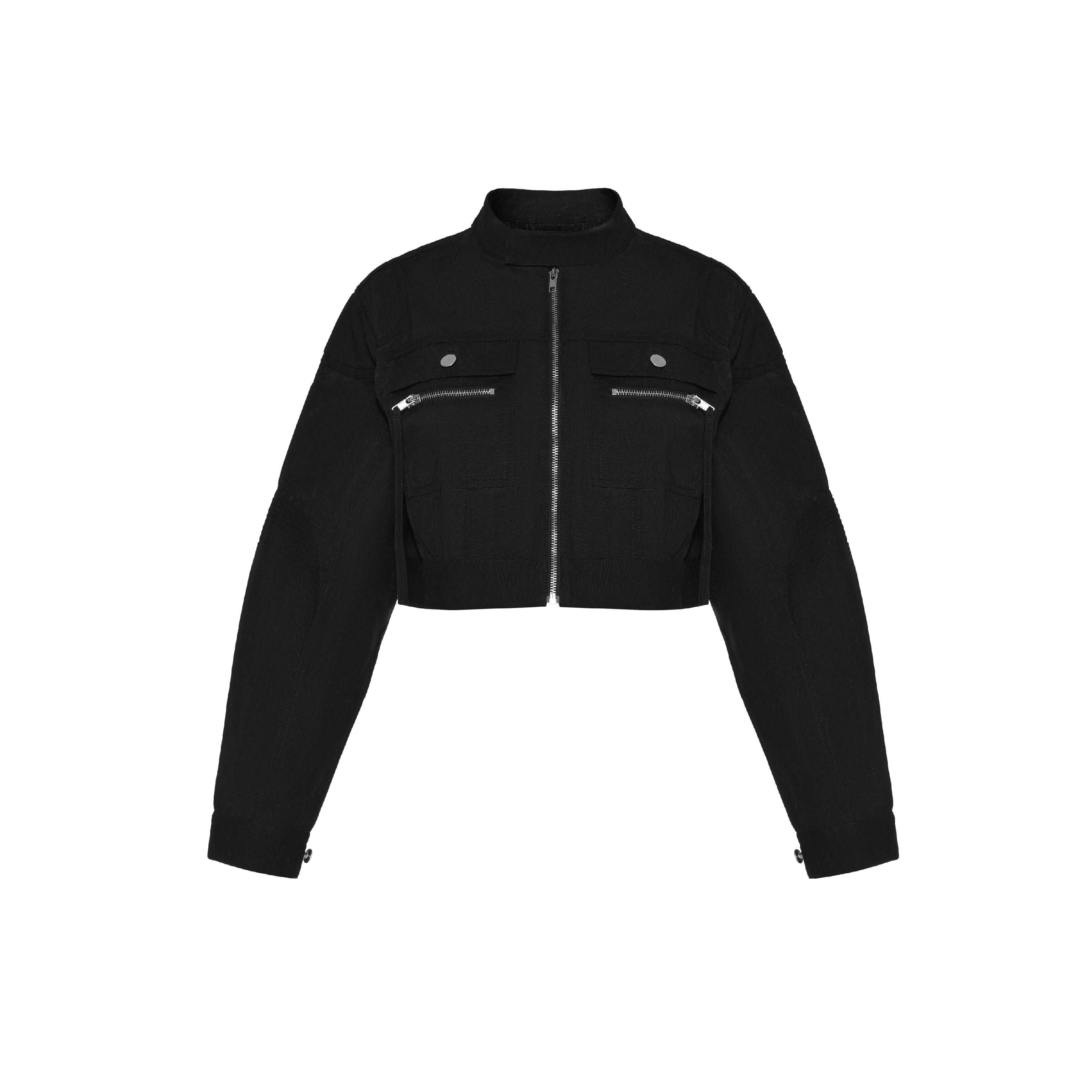 CRUSHED SATIN BLOUSON - BLACK