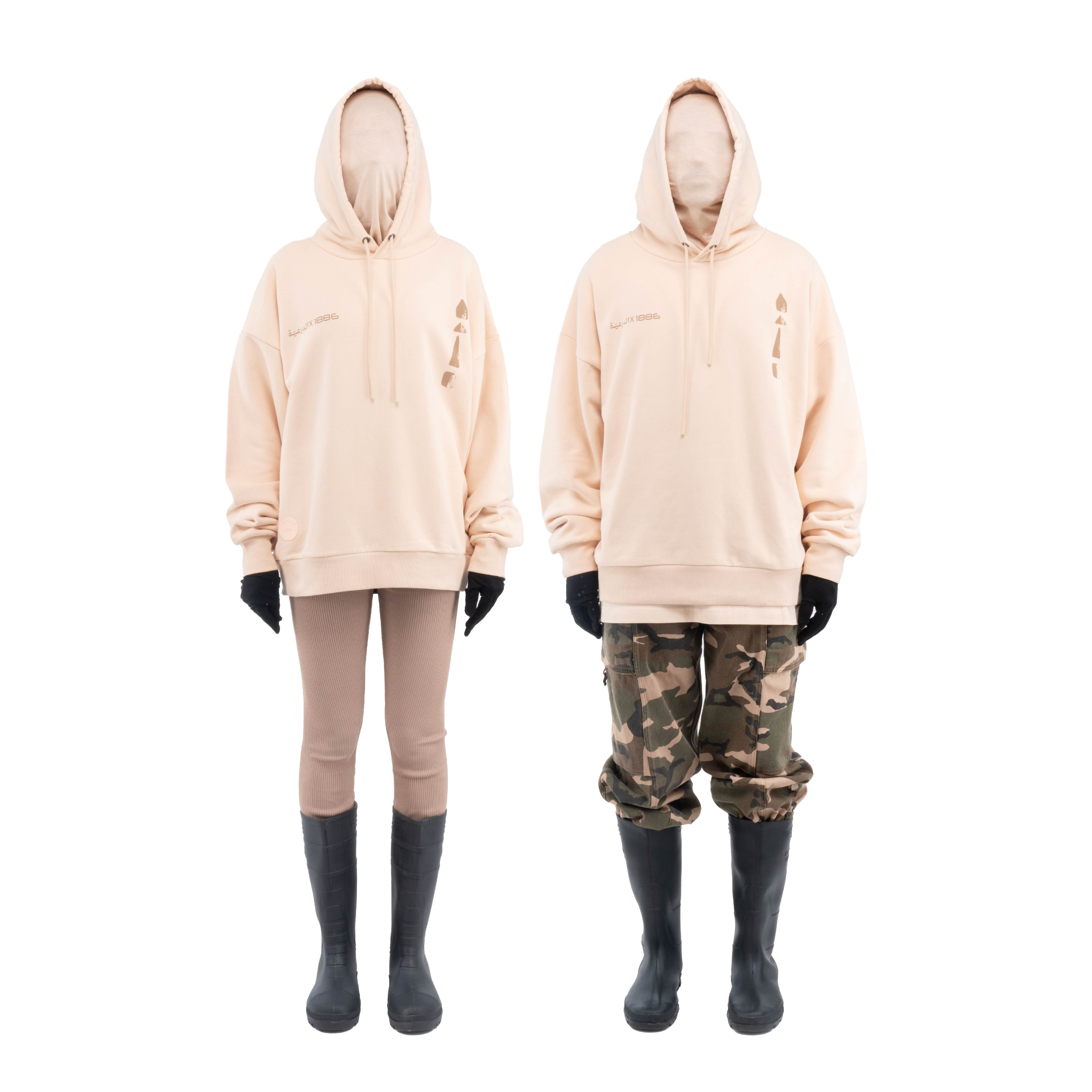 Shown on female and male models in size M. Unisex, relaxed silhouette for easy daily wear.