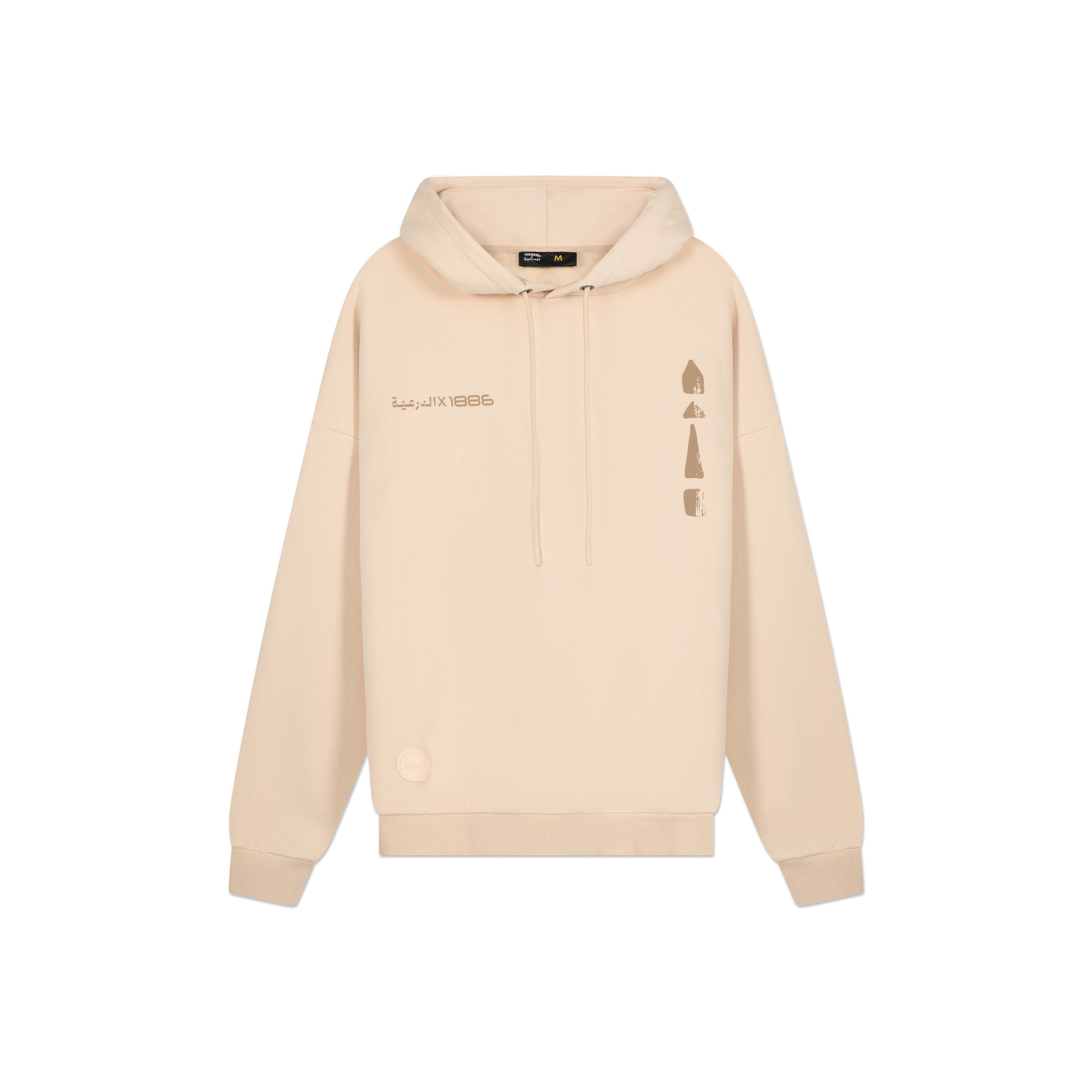 Long sleeves oversize hoodie With 'AD-Diriyah ' graphic print at front and at back. Rib knit at cuffs and hem.