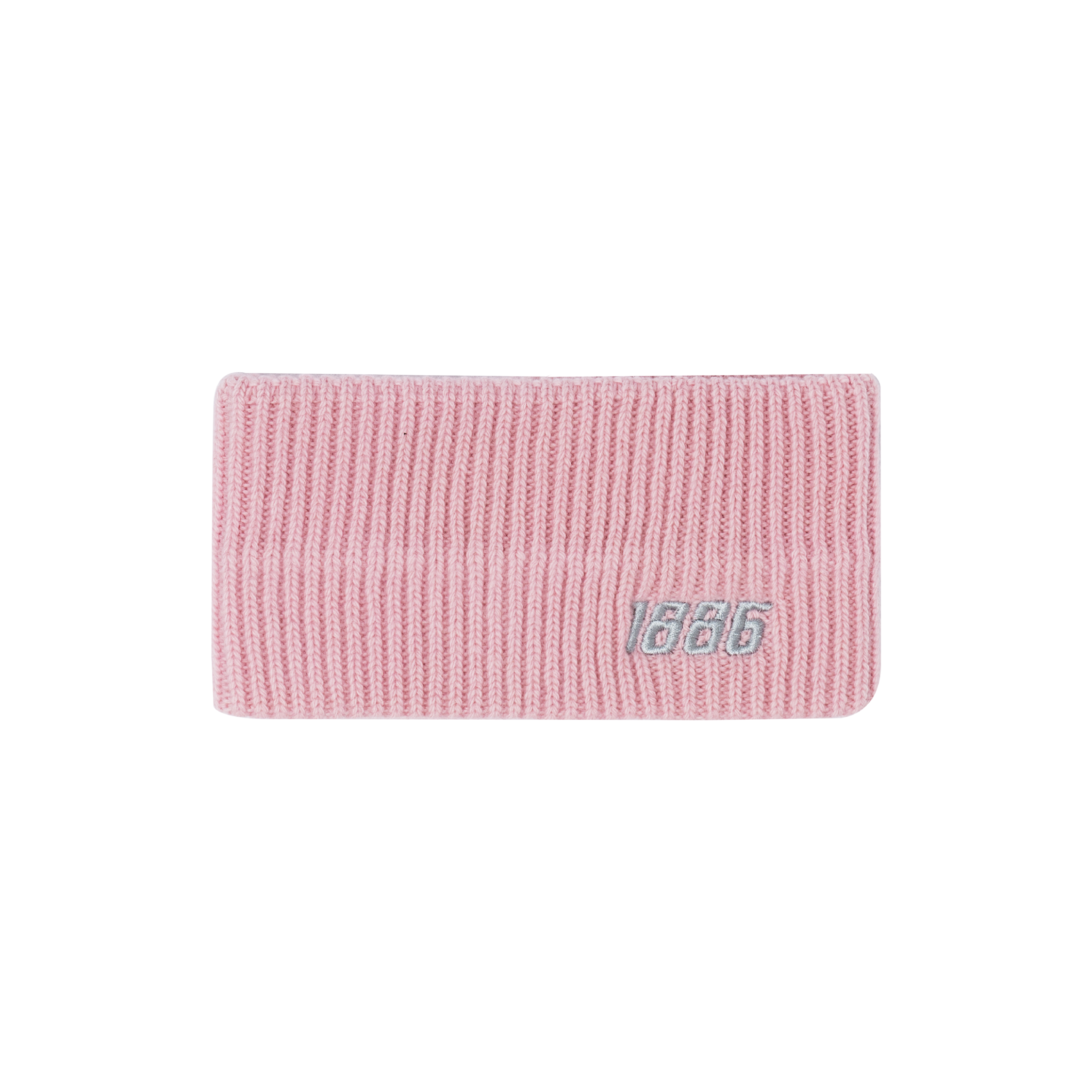 Bande de sueur en laine rose. Logo cousu « 1886 » sur le devant.