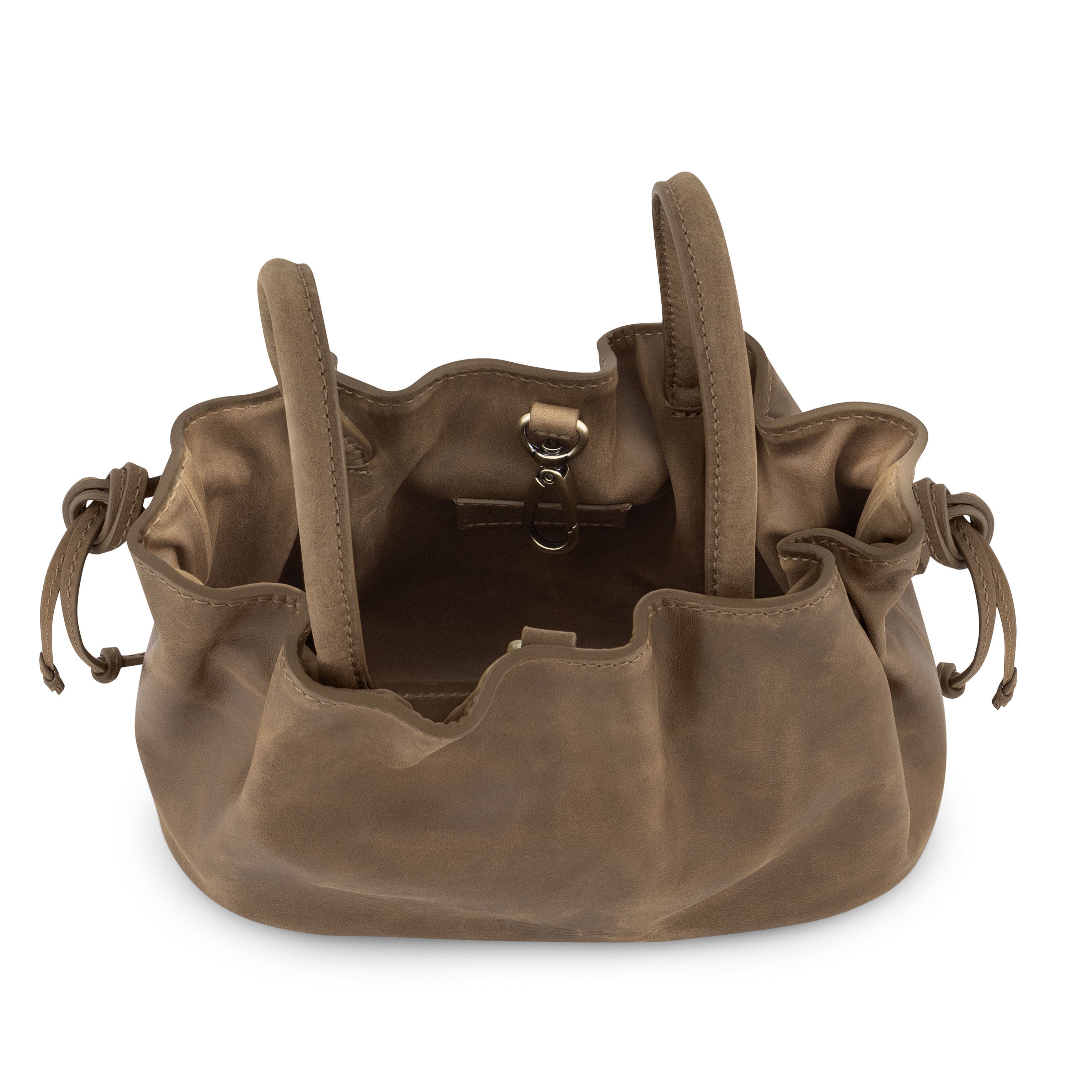 The Mini Bucket Bag is an expression of refined craftsmanship. This soft suede drawstring bag is designed with fluid structure and elegant restraint, allowing the natural texture of the material to take center stage. Lightweight yet purposeful, it transitions seamlessly from day to evening with understated sophistication.