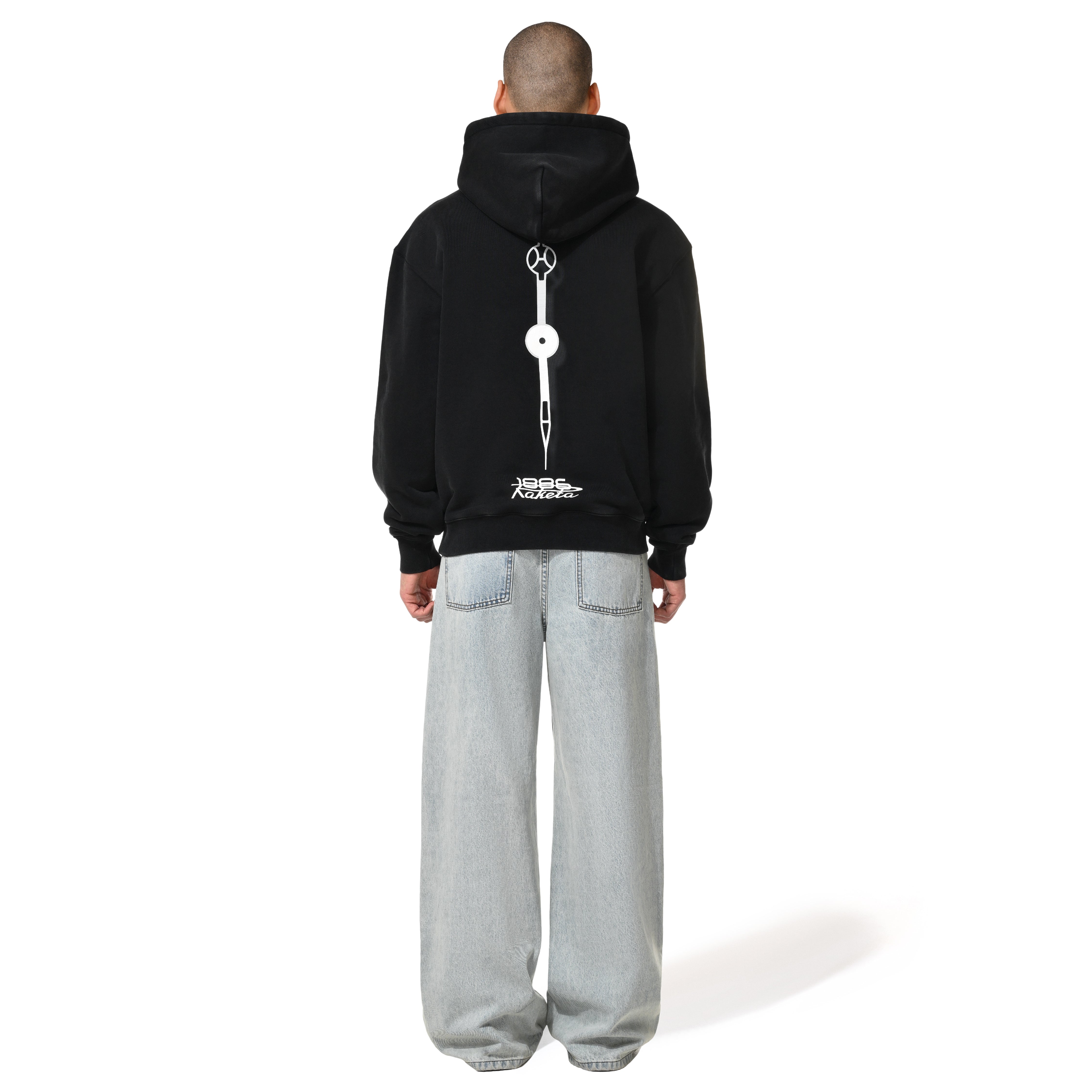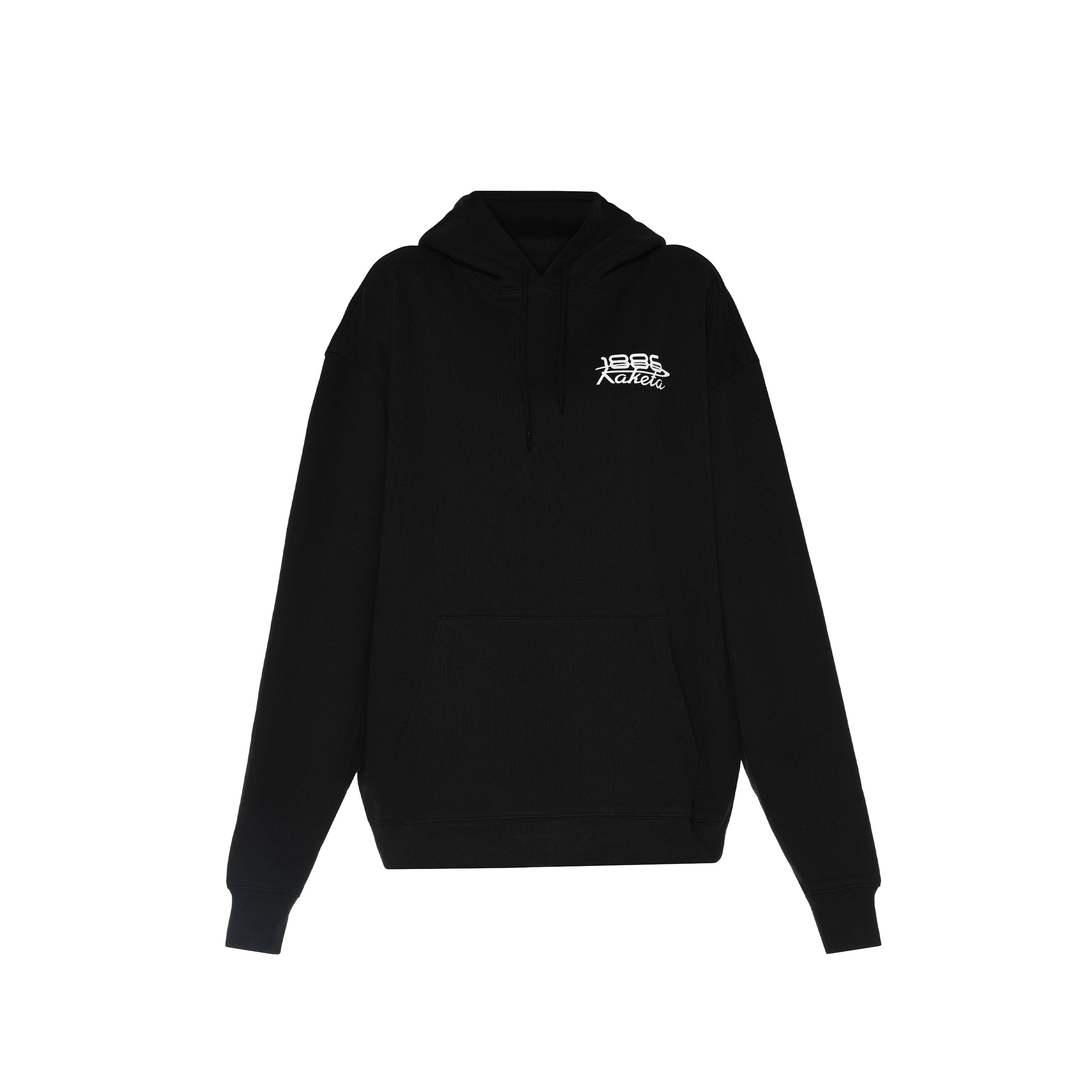 From the exclusive 1886 x Raketa collaboration, this unisex hoodie reflects the essence of time, precision, and legacy. The front maintains a clean minimal aesthetic with the co-branded logo, while the back features a bold, graphic interpretation of Raketa’s signature watch hands—symbolizing movement, vision, and the unstoppable march toward the future. The relaxed fit and timeless black hue make it a standout staple for any wardrobe.