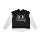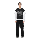 T-shirt noir manches blanches avec imprimé graphique sur le devant.