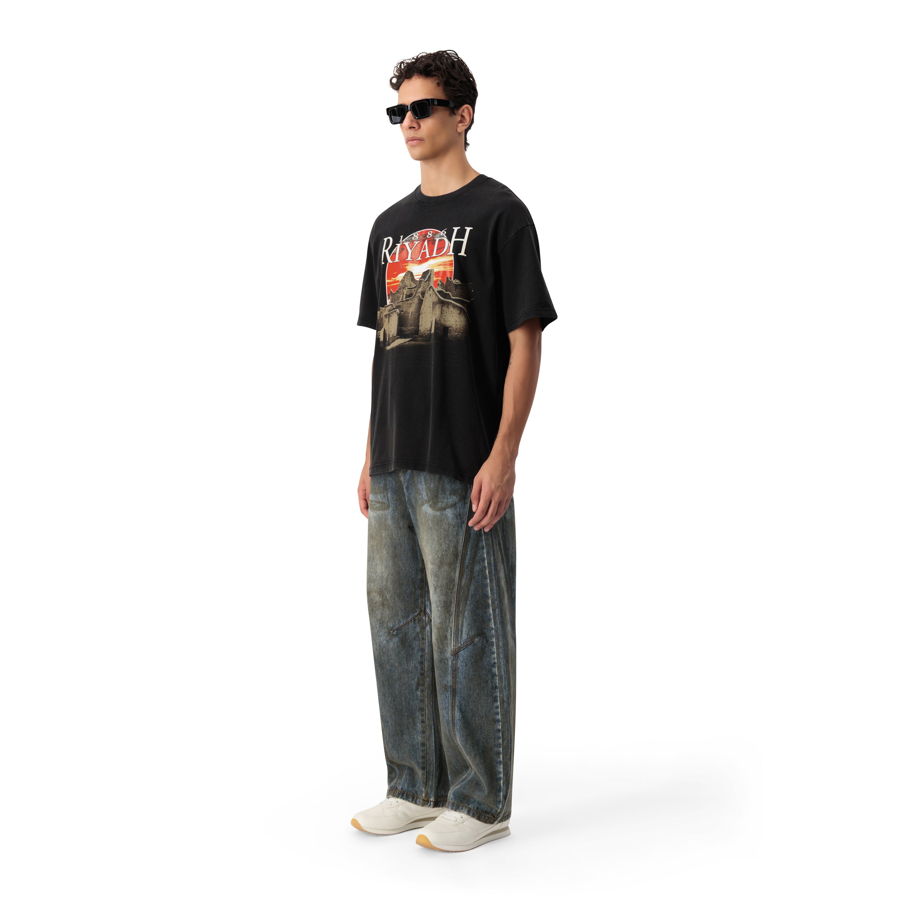 "Exclusive" Black T-shirt Short sleeves Oversized fit "RIYADH" artwork printed at front. Crewneck .