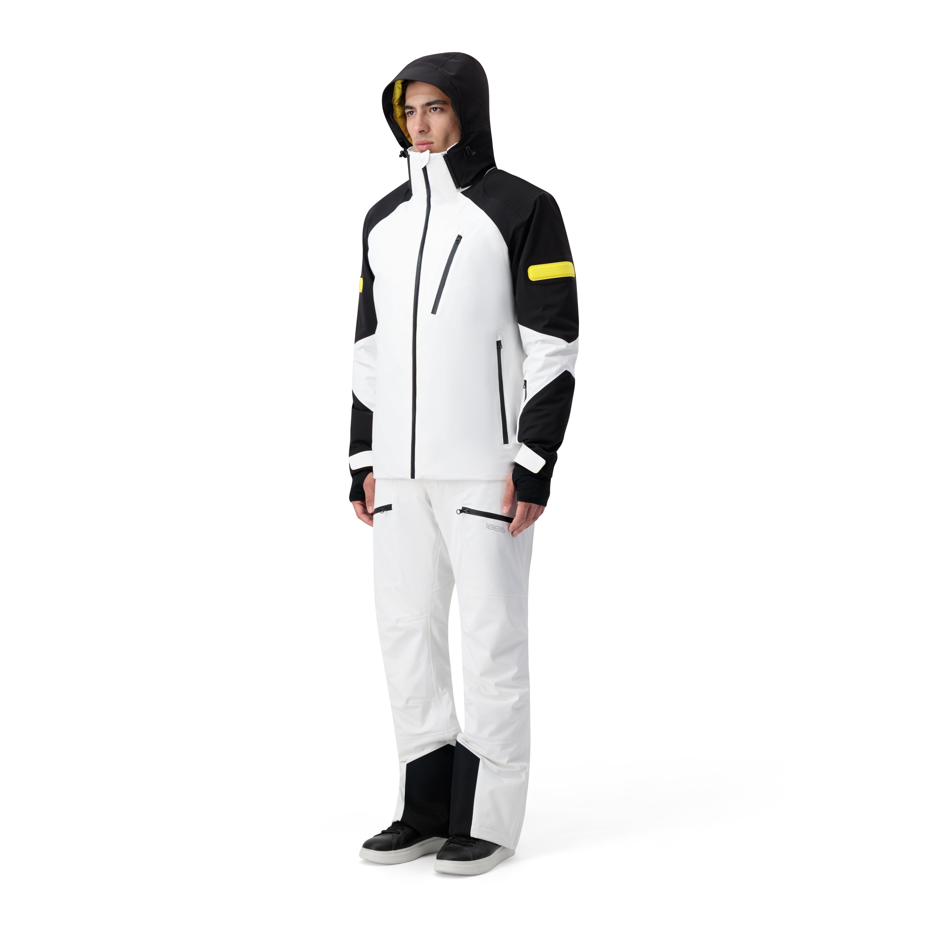 Elevate your cold-weather wardrobe with this performance-driven alpine jacket, engineered for both sleek urban minimalism and high-altitude functionality. Precision-cut paneling in crisp white and deep black creates a striking geometric silhouette, while subtle neon accents deliver a modern, high-visibility edge.