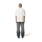 Short sleeves oversized white t-shirt , with (FRUIRS) Printed & ants stitched at front . Crew neck colar .
