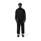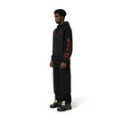 Details like the branded metal plate on the belt loop and two functional side pockets elevate the design. With a zip and button fly closure, these long-length pants are as practical as they are stylish, embodying the spirit of biker culture with a sleek, modern twist.