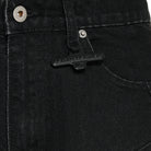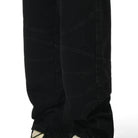 Crafted for an edgy and timeless aesthetic, these straight-legged biker pants bring a bold, utilitarian edge to your wardrobe. Made from durable, non-stretch black denim, they feature tonal ribbed knee patches and classic MC biker stitching for added texture and definition.