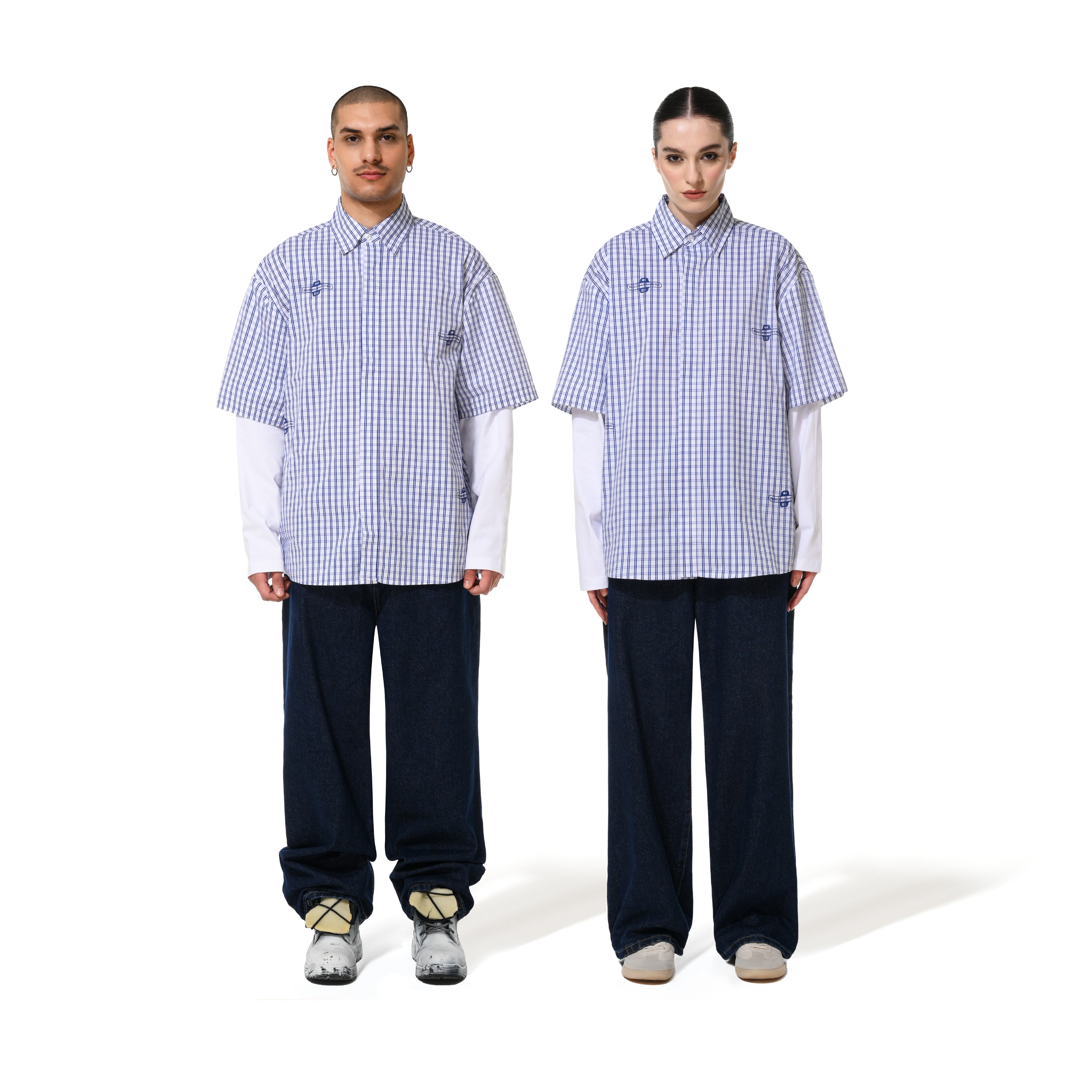 GINGHAM DOUBLE SHIRT - BLUE