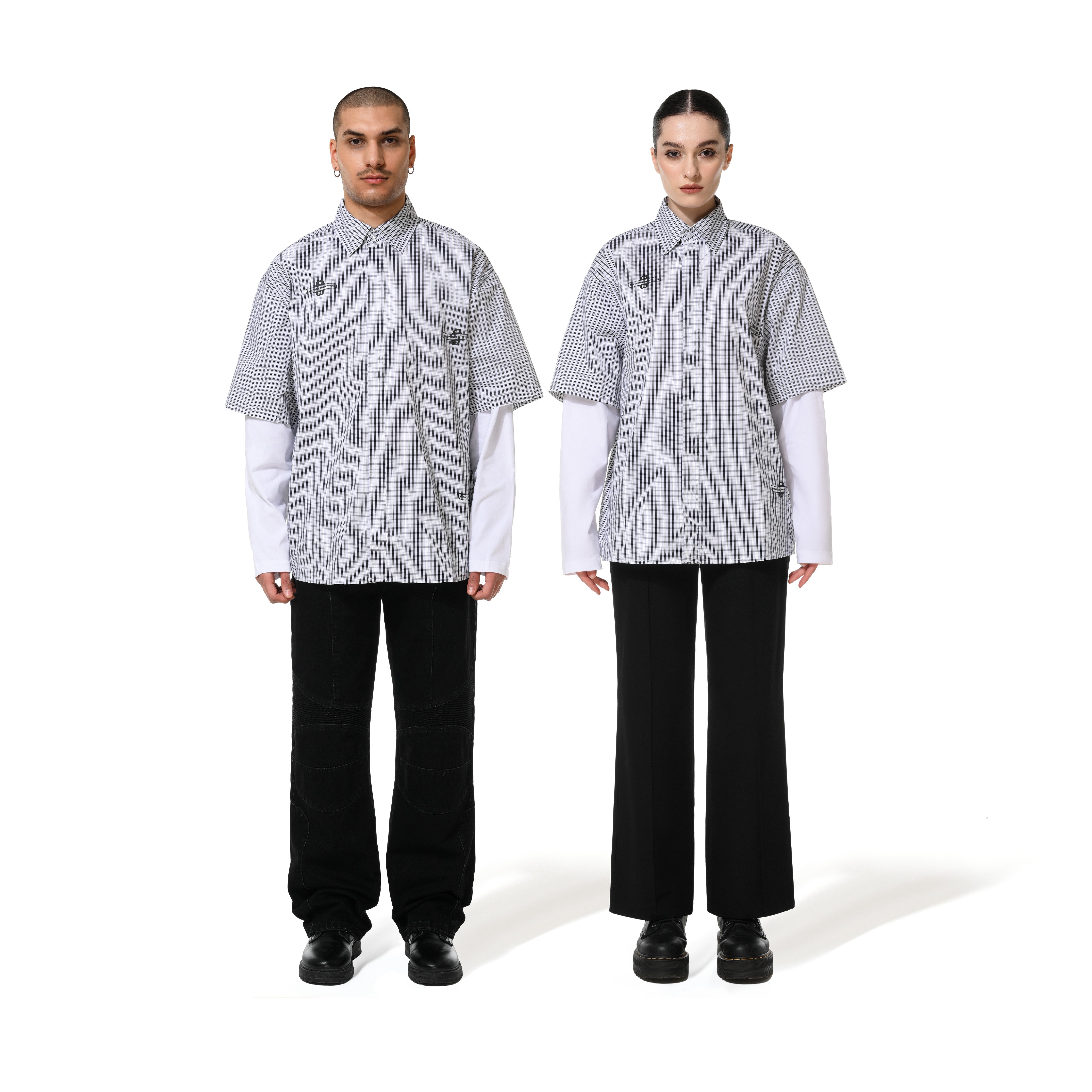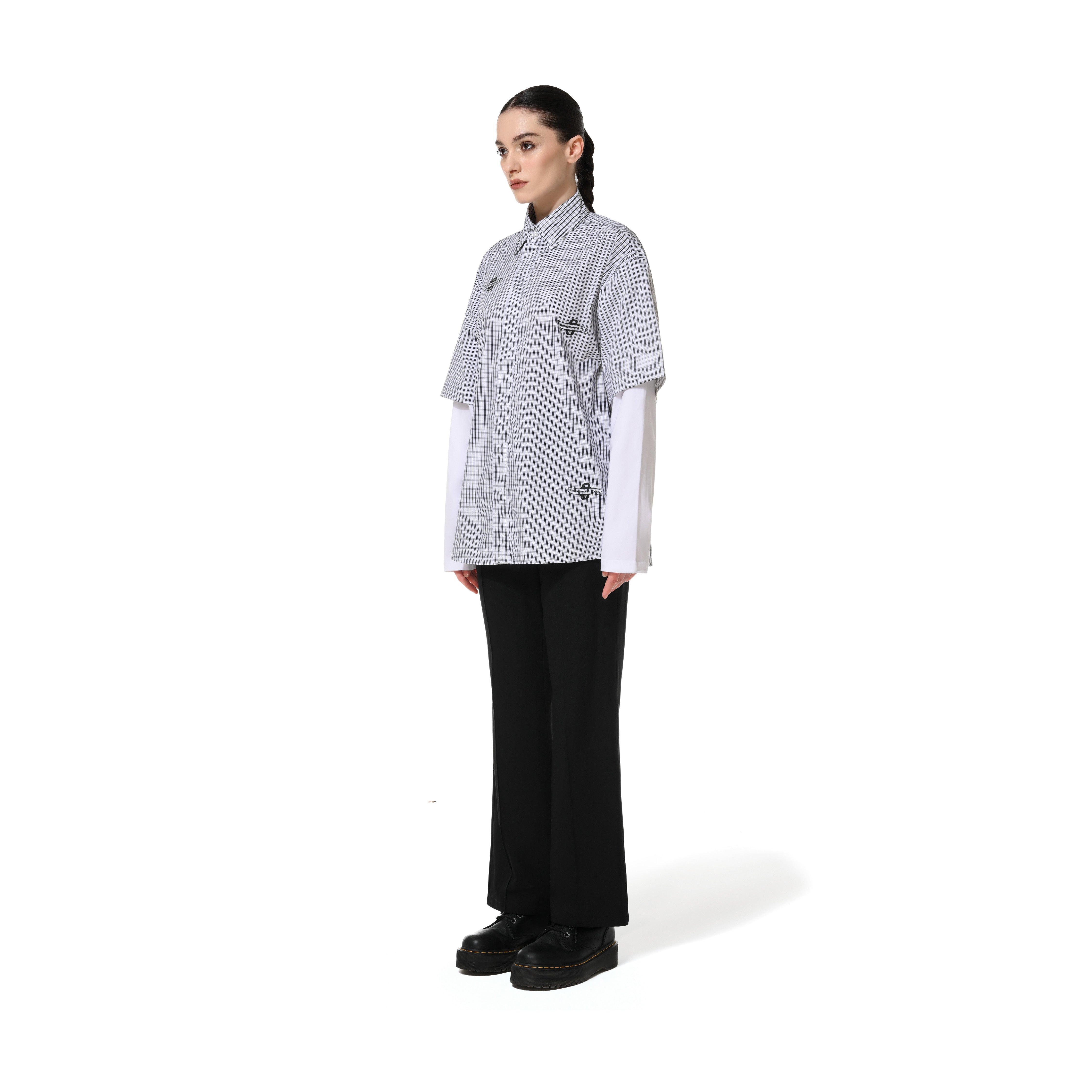 GINGHAM DOUBLE SHIRT - GREY