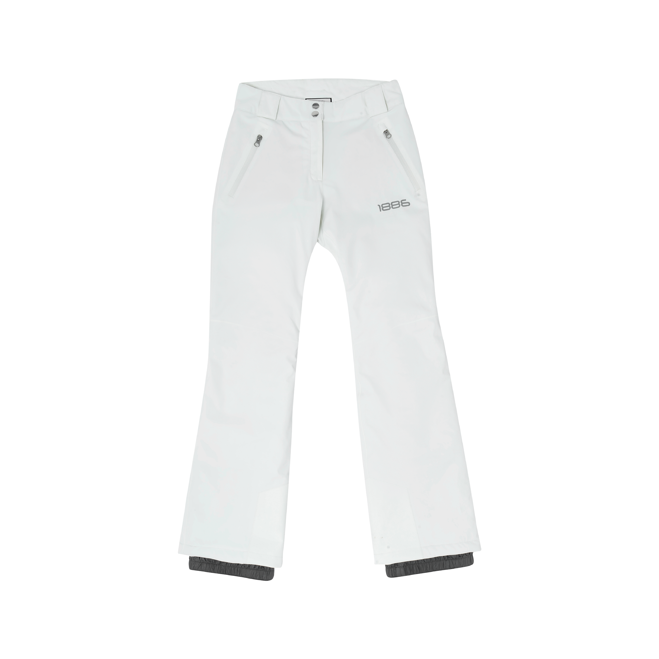 Introducing our White Ski Pants – crafted from matte stretch fabric is both water-repellent and water-resistant. The front features two convenient pockets with zippers and the "1886" logo on the left leg adds a stylish accent. Stay both stylish and weather-ready with these versatile ski pants.