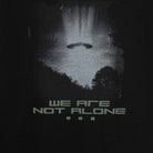 A cinematic statement rendered in monochrome, this 1886 graphic tee explores mystery and modern identity through bold visual storytelling. Crafted in deep black premium cotton, the design features a striking extraterrestrial scene illuminated against a dark landscape, finished with the declaration “We Are Not Alone.”