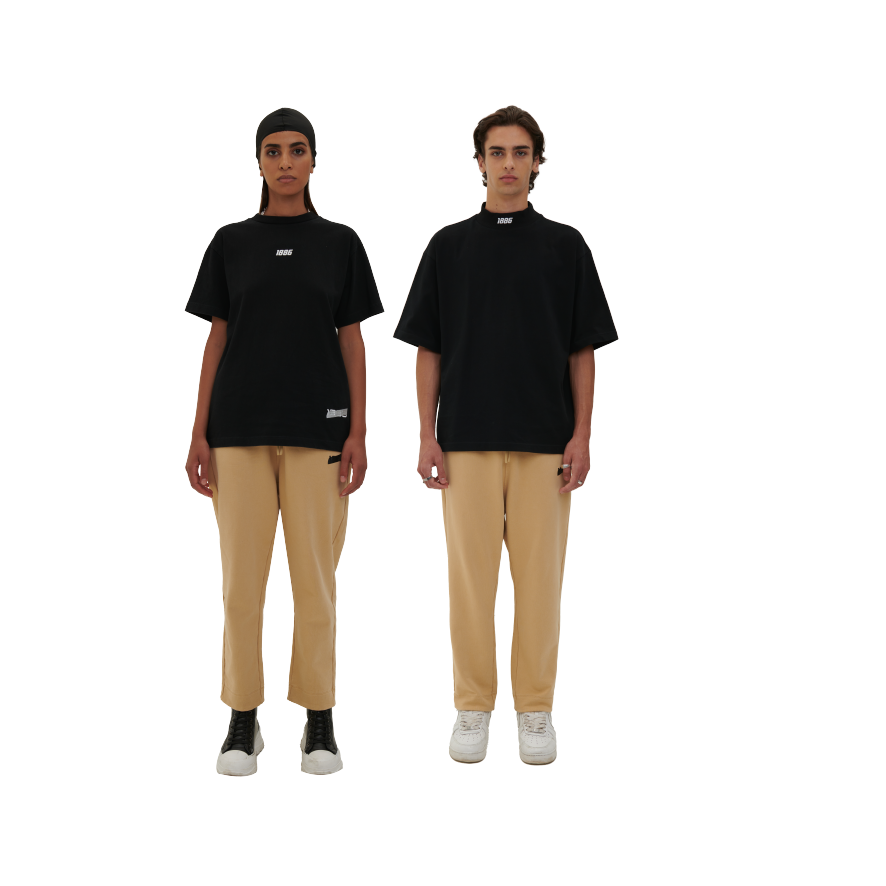 - Oversized cropped pants with two pockets on sides. ( 1886 ) logo at front.