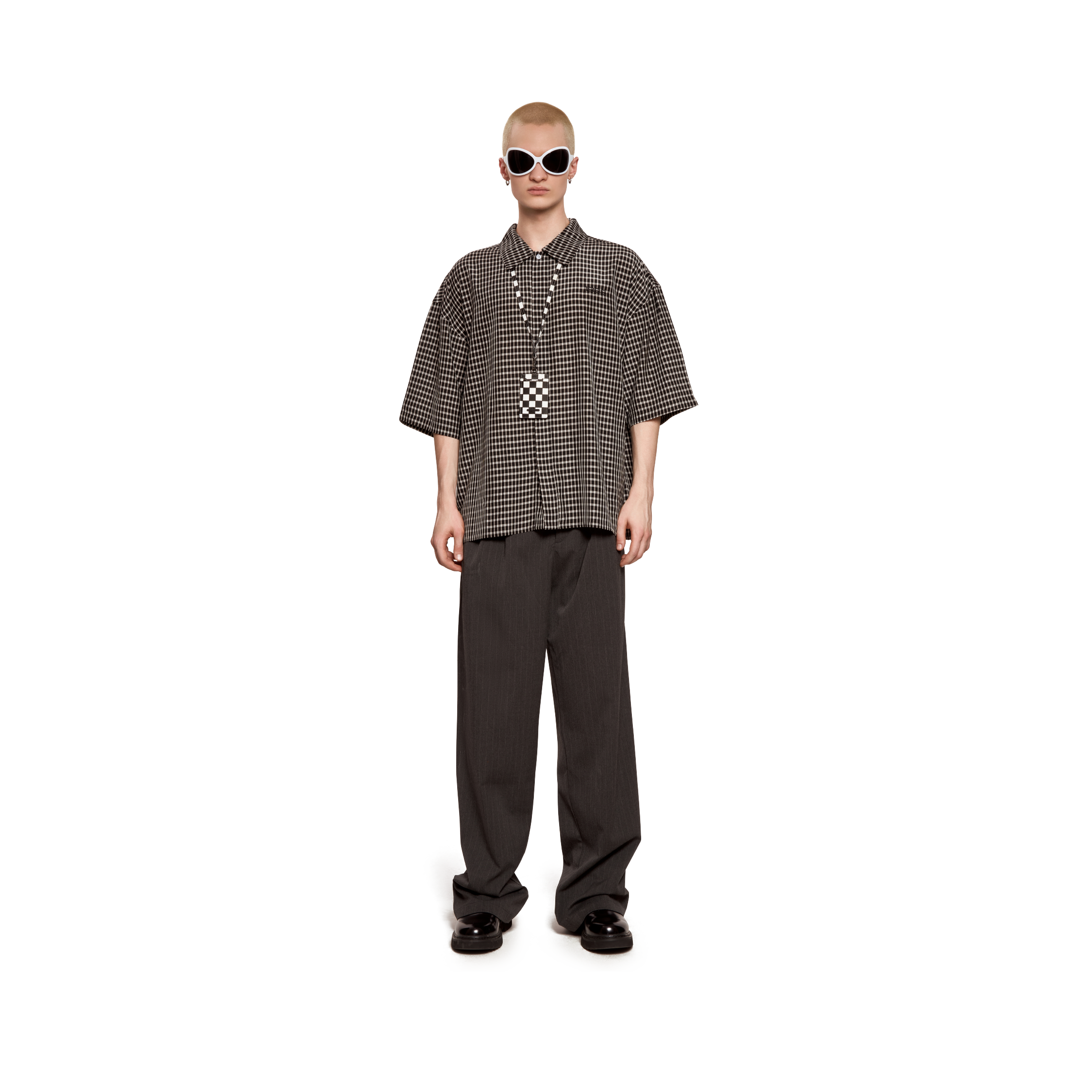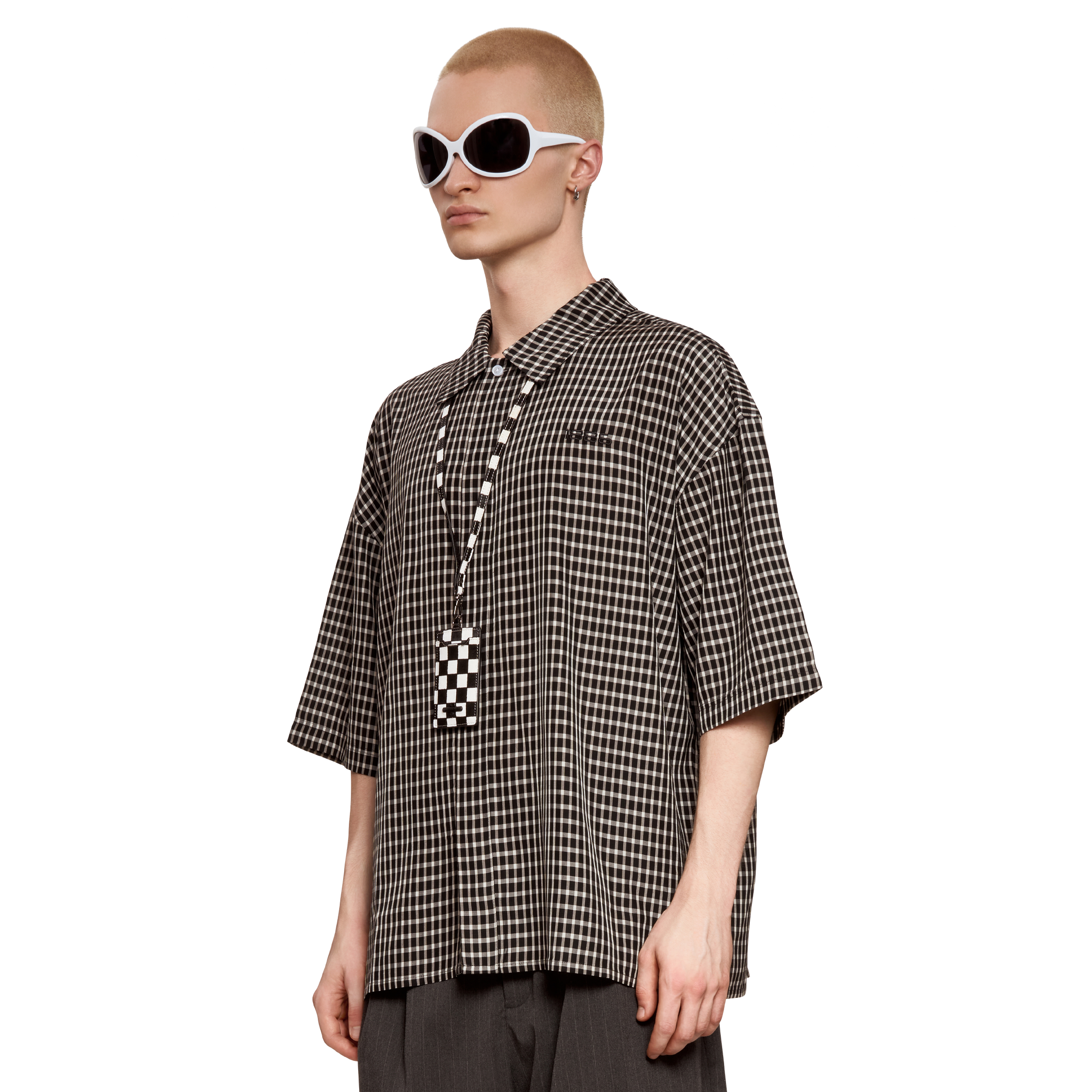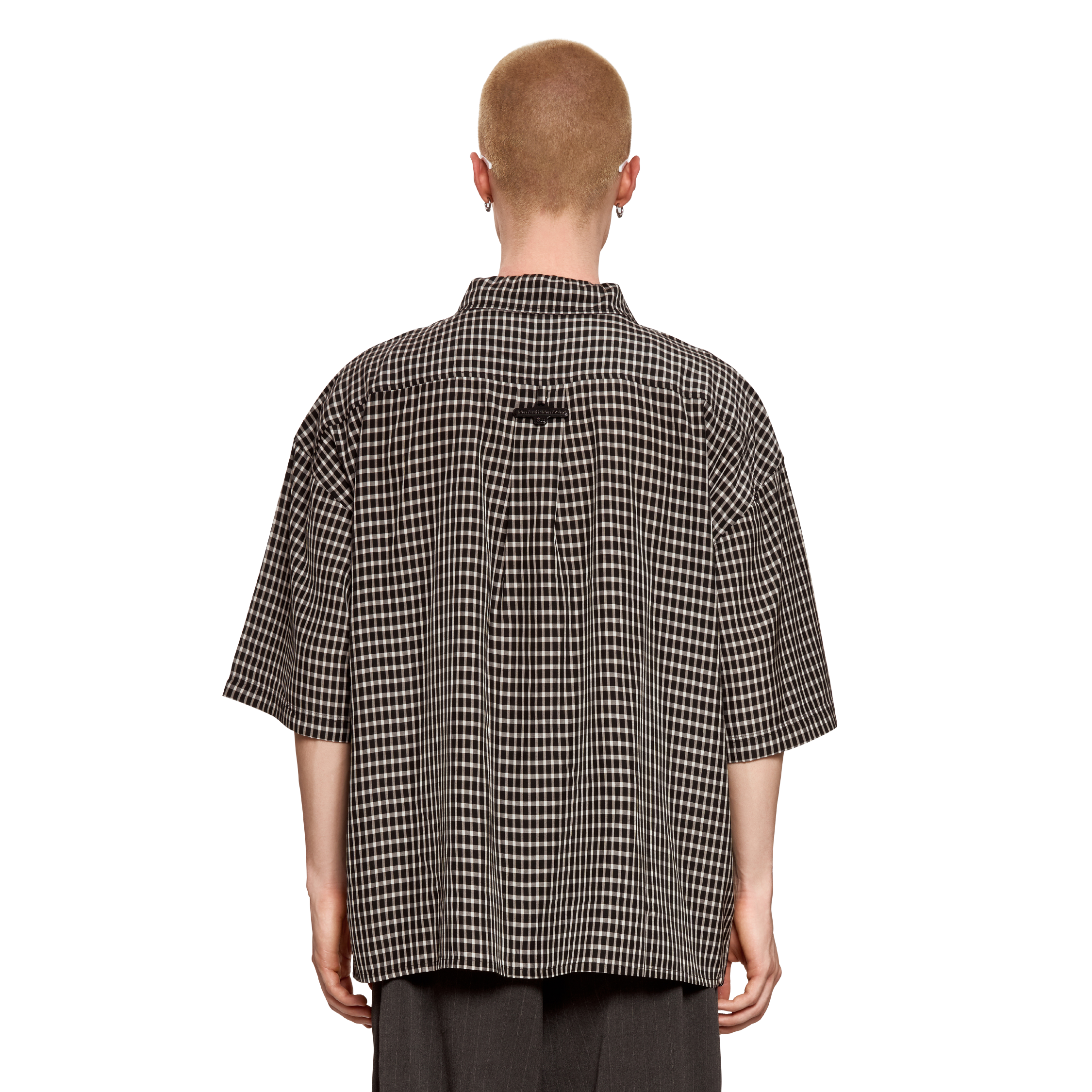 Short sleeve shirt with gingham check pattern, classic coLlar with front button fastening