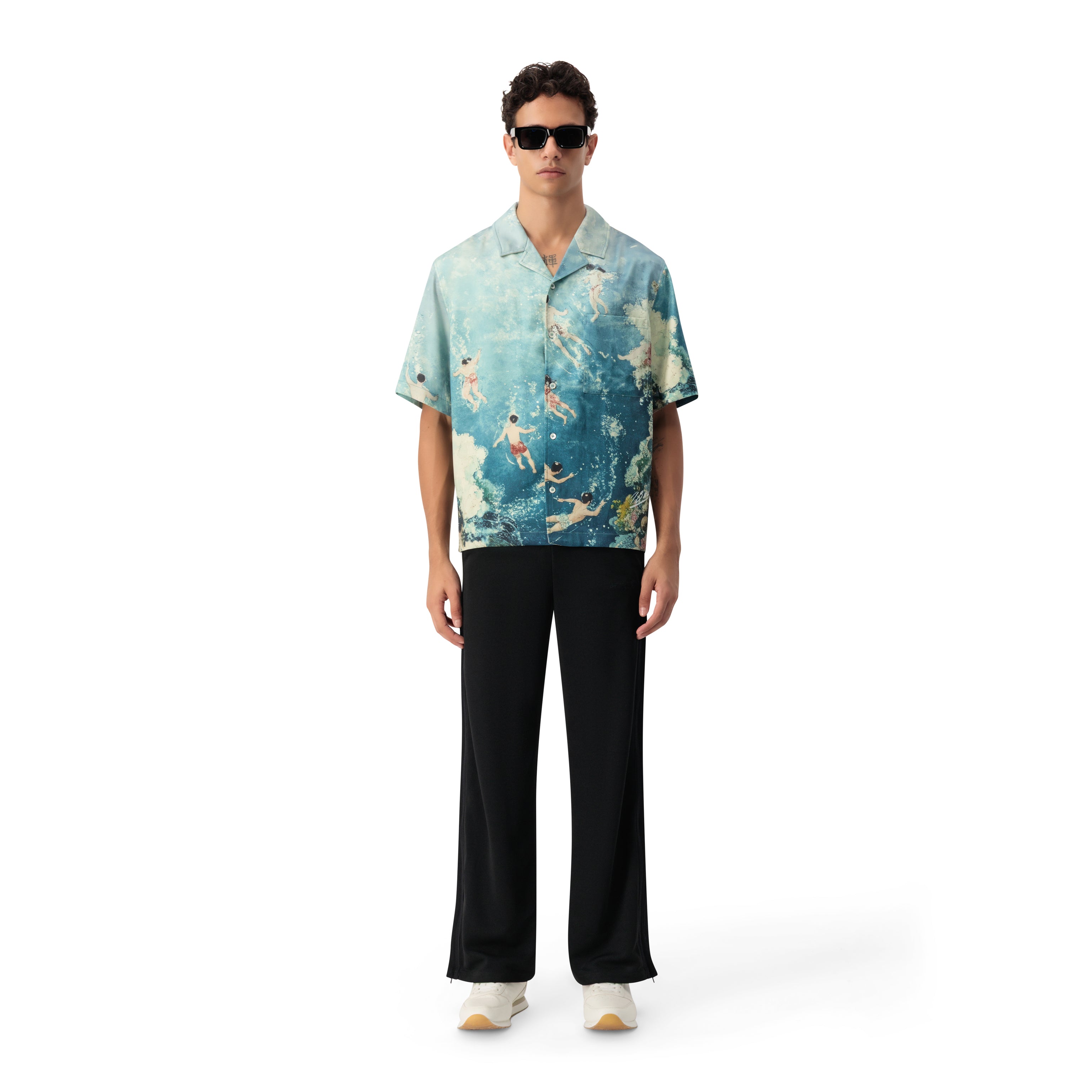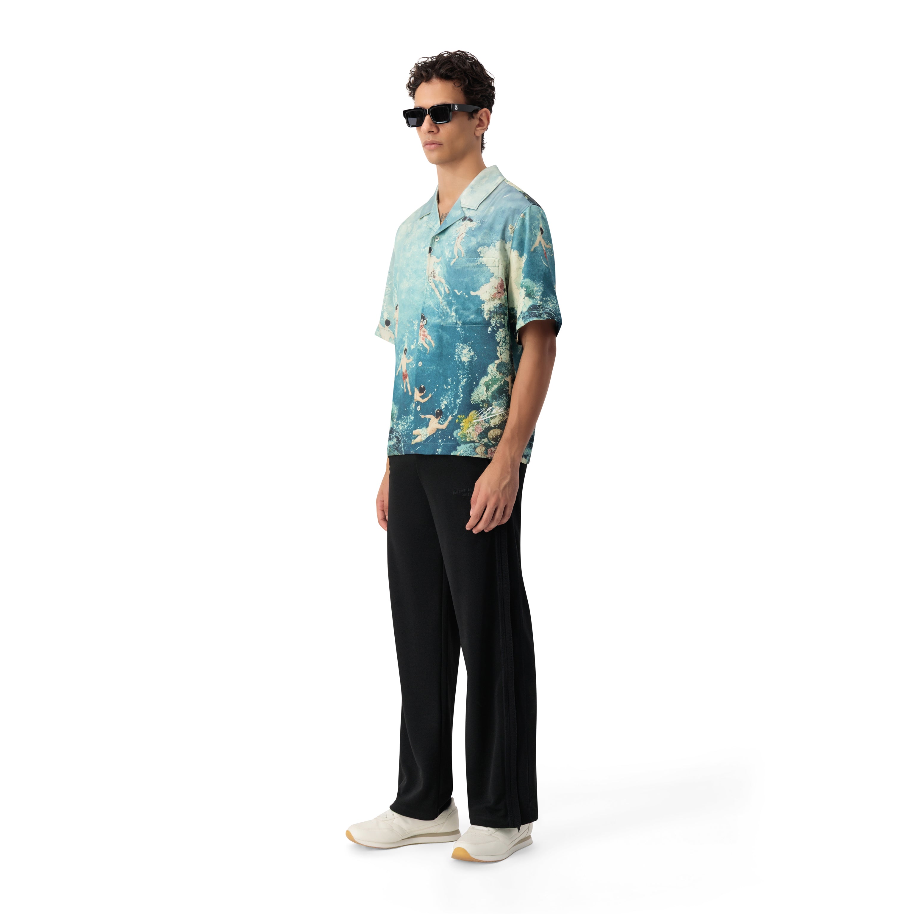 A wearable work of art inspired by the rhythm of the sea. The 1886 Azure Reef Resort Shirt showcases a hand-painted coral reef scene, where vibrant marine life meets rolling waves and silhouettes of swimmers drifting through crystal waters. Designed for refined escapes and elevated summer moments, this statement piece blends storytelling with effortless resort sophistication.
