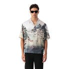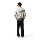 Printed shirt Camp collar ,Short sleeves , Button-up front , Landscape artwork printed throughout