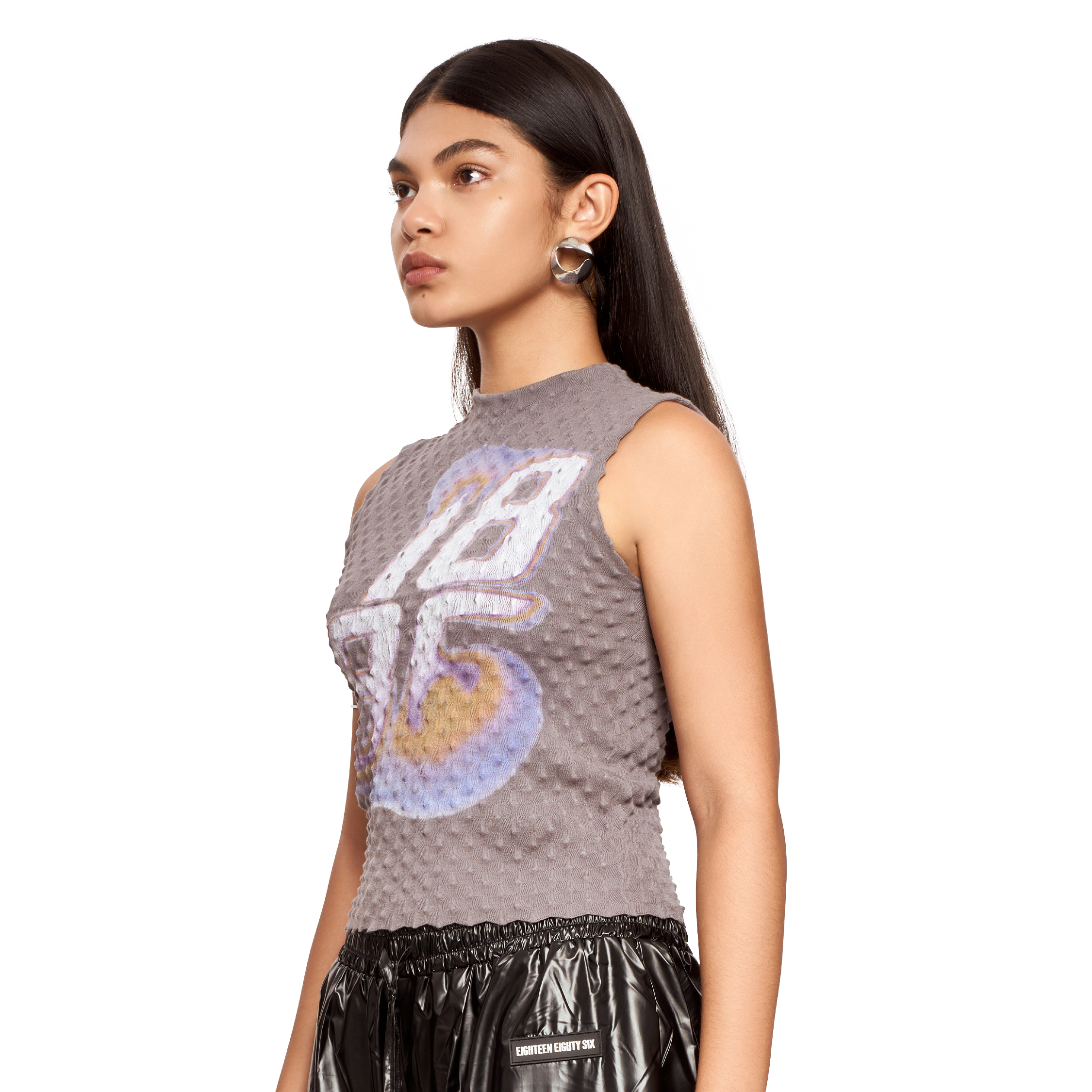 TEXTURED PRINTED TOP- GREY