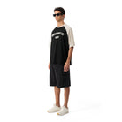 Black and off-white T-shirt Short sleeves Oversized fit "EIGHTEEN EIGHTY SIX GALLERY" artwork printed at front ,Crewneck .