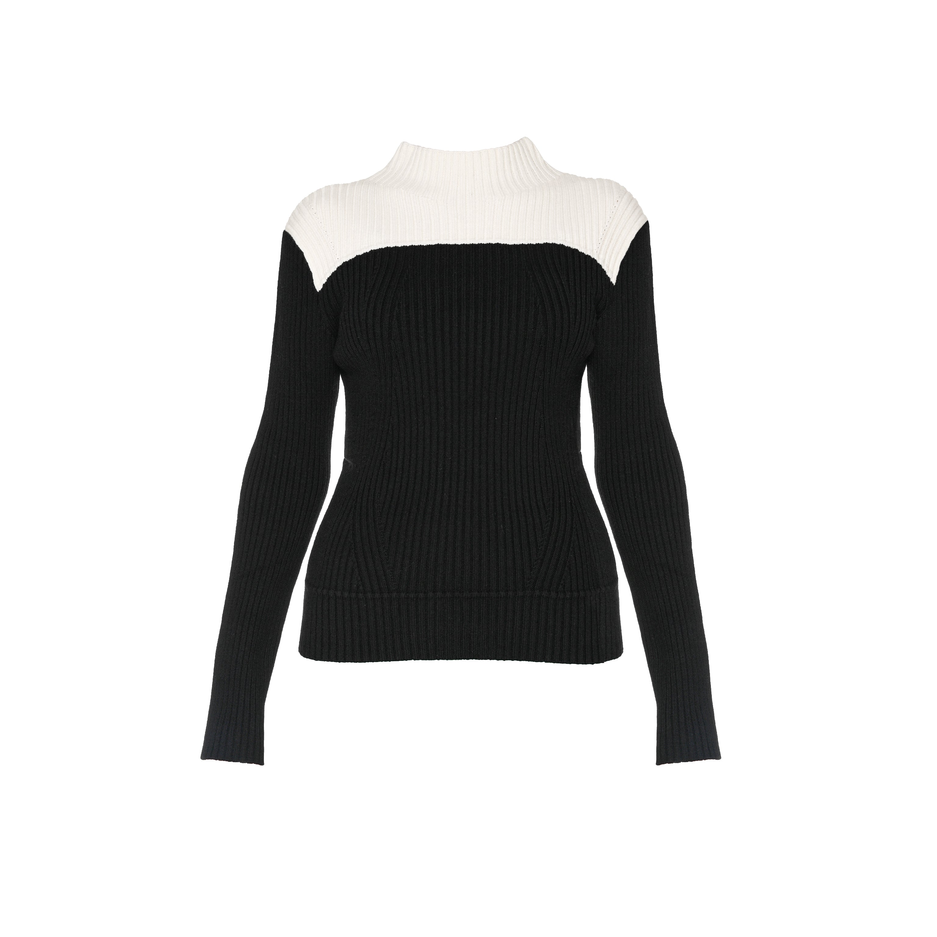 Introducing our White & Black High Neck in, a chic and comfortable ribbed texture piece. This long-sleeve top features a stylish high neck design crafted from ribbed fabric for a modern touch. The black rubber logo at the back adds a subtle yet distinctive detail, showcasing attention to style. Elevate your look with the contrasting colors and modern design that effortlessly blend fashion and sophistication.