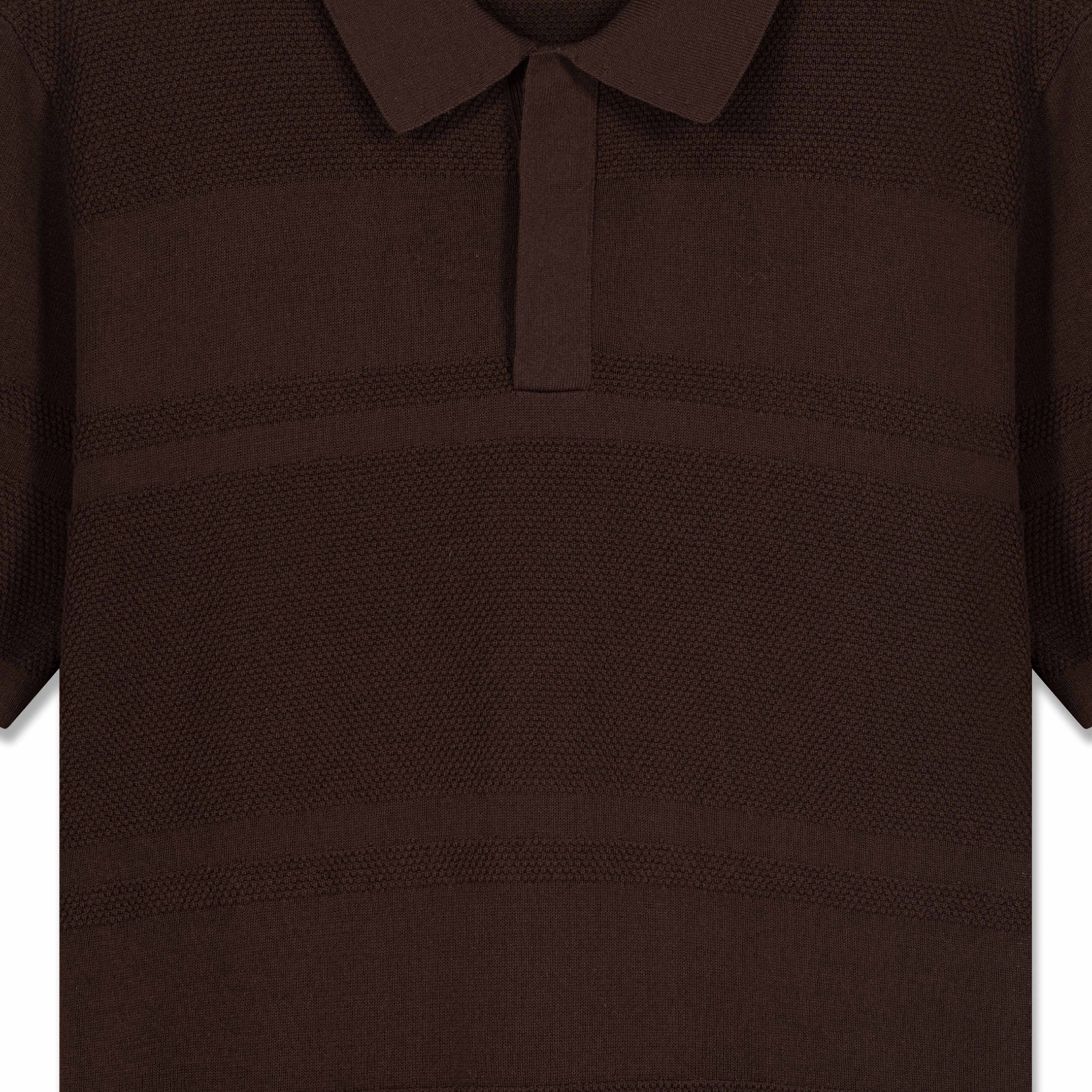 A timeless classic, this 1886 knit polo is crafted with precision and restraint. Rendered in a rich espresso brown tone, the design features subtle textural banding that adds depth and dimension without excess. The refined knit construction offers structure while maintaining a soft, fluid drape.