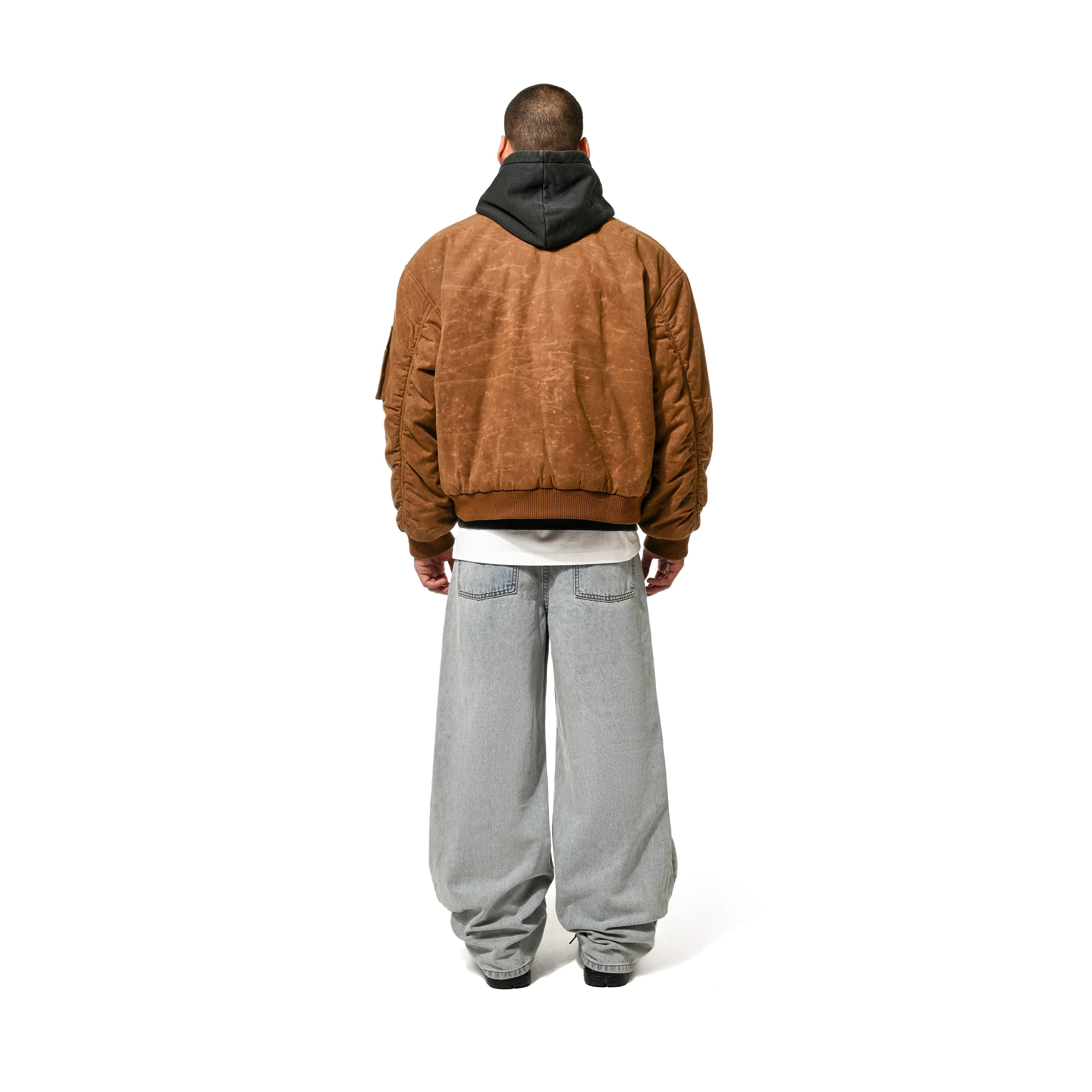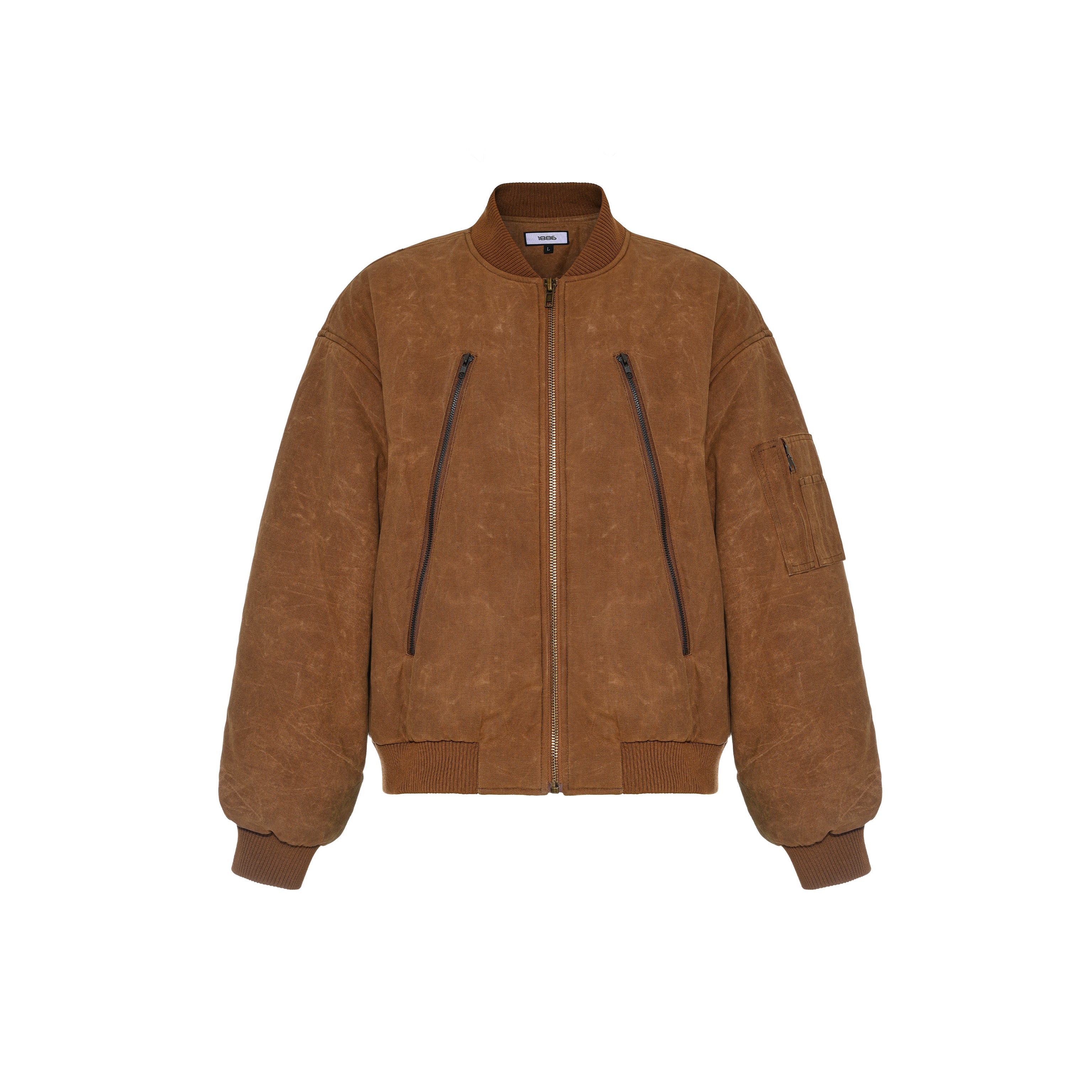 Part of our Fall/Winter 2024 collection, this waxed bomber jacket redefines a timeless classic with a modern, weather-resistant twist. Featuring a tonal ribbed collar, hem, and elasticated cuffs, it blends style with functionality.