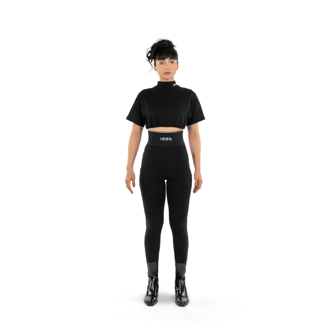 - Leggings with feminine lines. Wide elastic waistband with ( 1886 ) logo stitched at front.